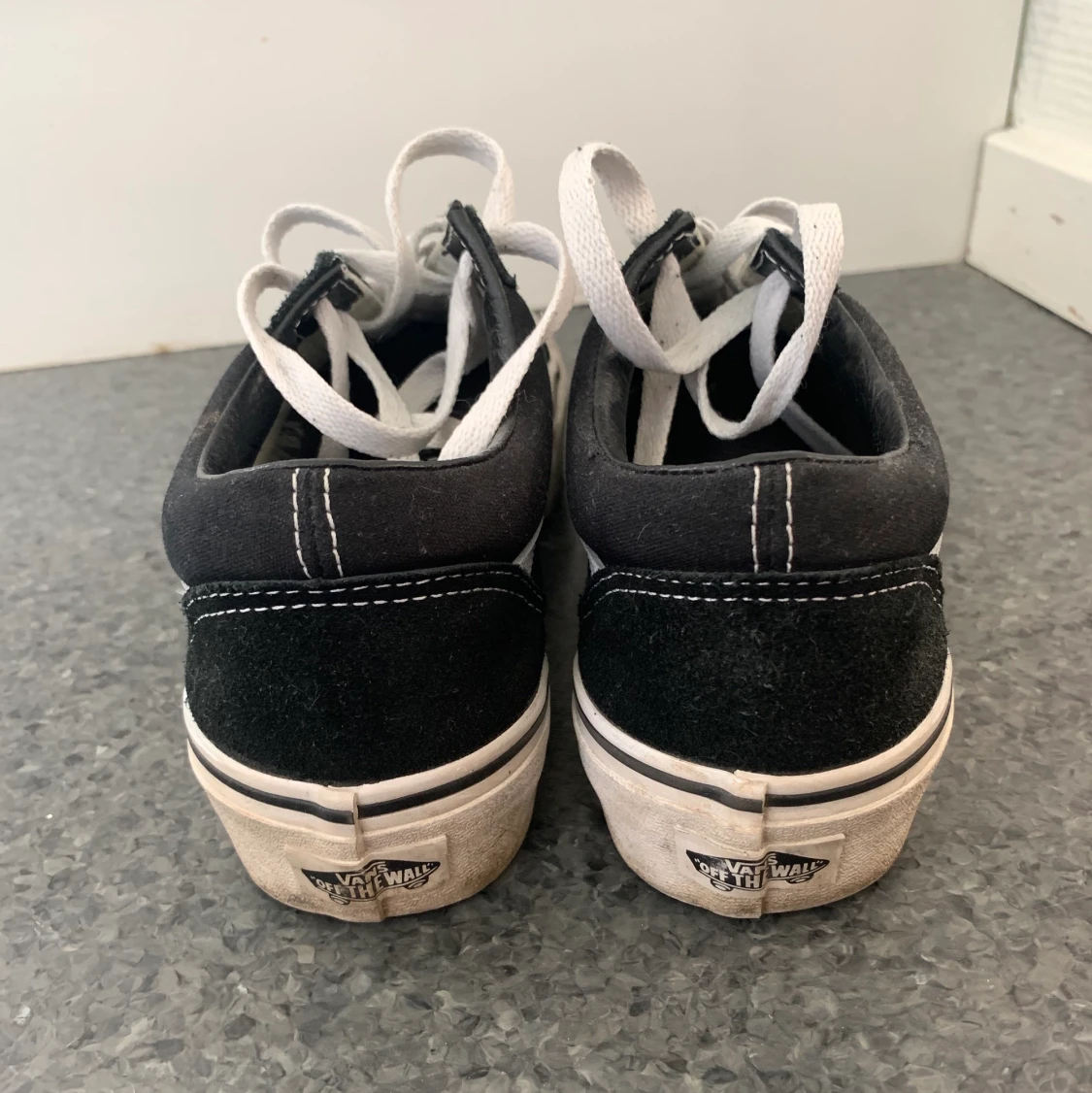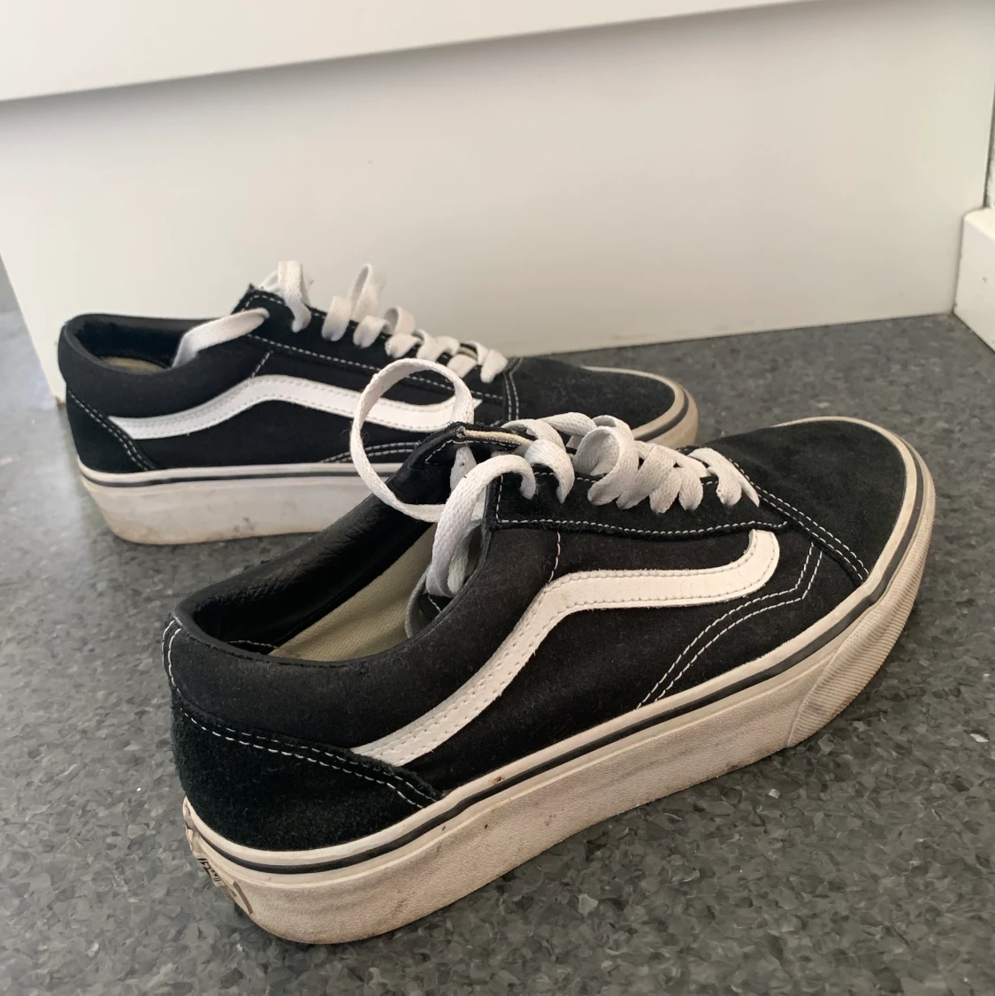 Fräscha Vans skor med lite högre sula, ej förstörda bara lite smutsiga. Passar till allt. Nypris: 849kr. Köparen står för frakten, fraktpriset oklart än så länge😊