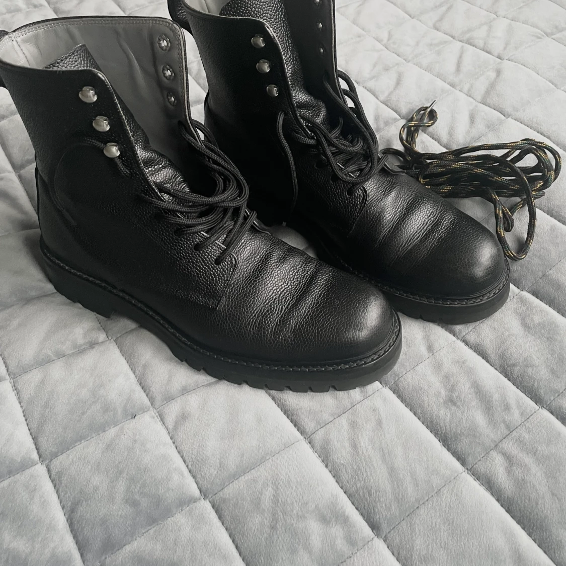 Sparsamt använda kängor från HOPE. Nypris var 2800kr Superfint skick. Man kan se på sulan på hälen att de använts tidigare. Läder. Originalskosnören med, de spräckliga samt svarta.