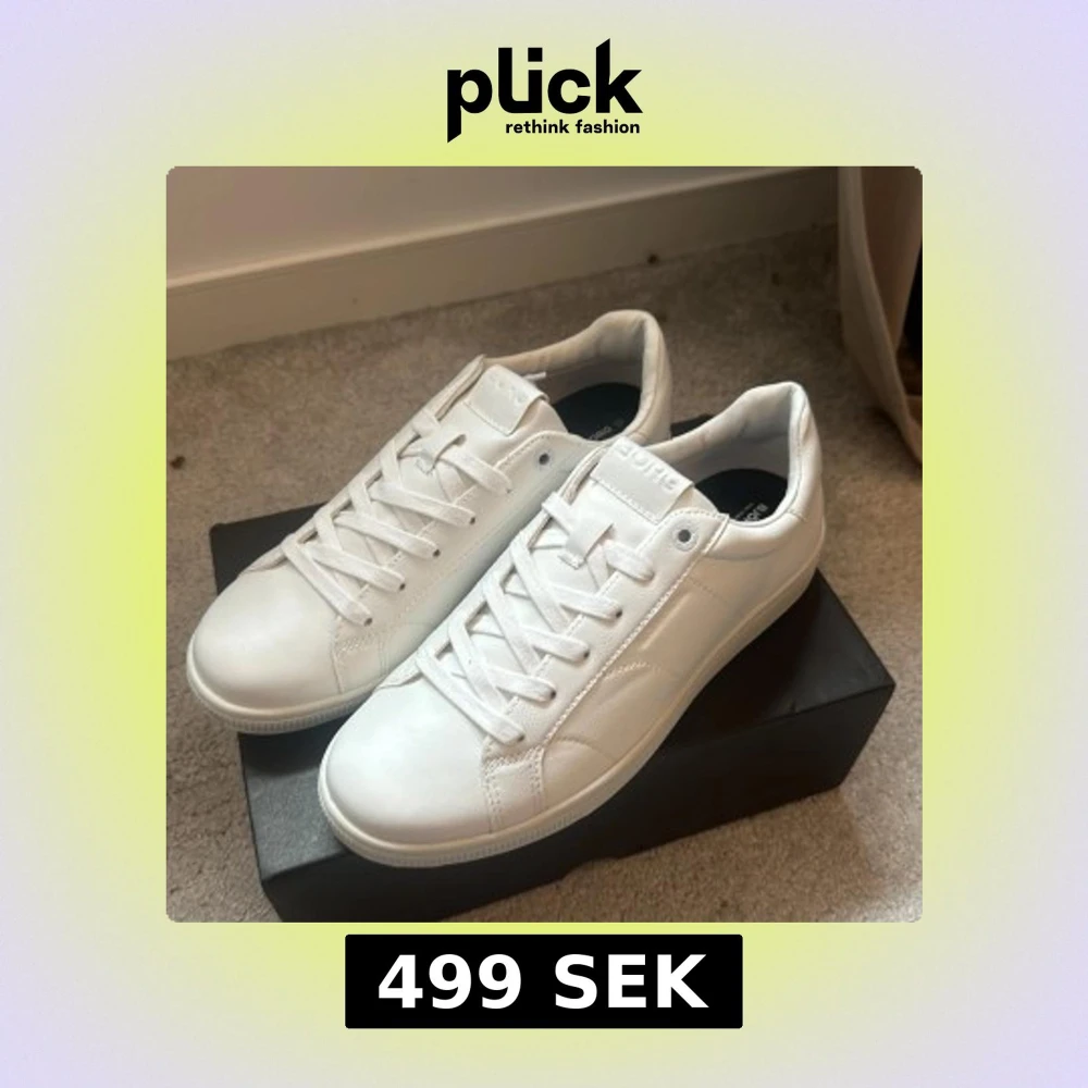 Stilrena vita sneakers från Björn Borg med klassisk design. Skorna har snörning, rund tå och är tillverkade i slätt syntetmaterial med diskret logga på plösen och innersulan. Perfekta för en clean och fräsch look. Aldrig använda!!! Helt nya, nypris 899kr