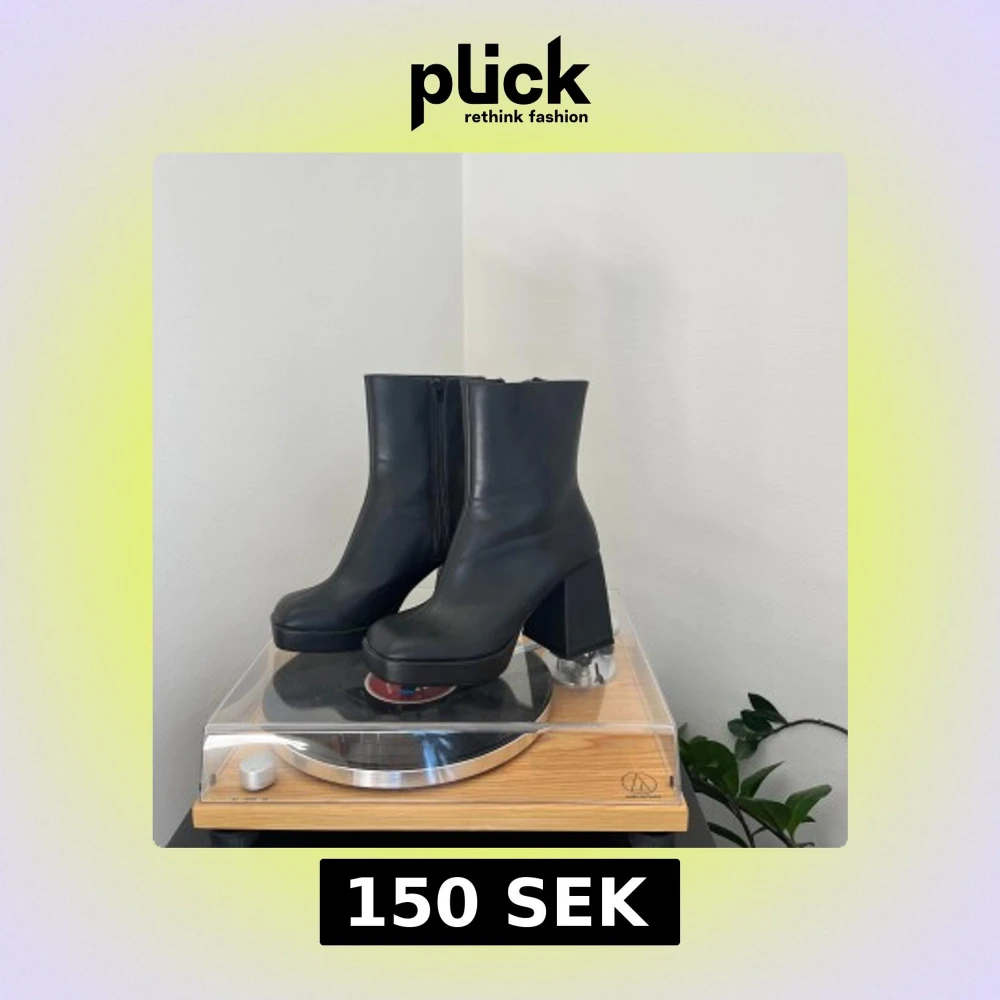 Svarta stövlar i fejkskinn med chunky hög klack och dragkedja på insidan. Väldigt sköna! Knappt använda och i så gott som nyskick.