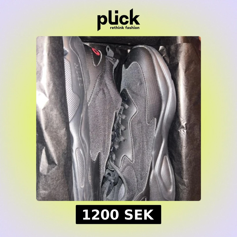 Säljer ett par svarta sneakers från Hugo med chunky sula och diskret logga på hälen. Skorna har snörning och är tillverkade i en mix av syntet och textil. Perfekta för dig som gillar stilrena och moderna sneakers.