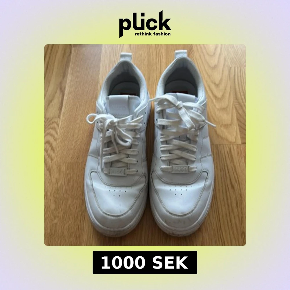 Snygga vita sneakers från Hugo med klassisk snörning och stilren design. Skorna har en tydlig logga baktill och är tillverkade i syntetmaterial. Perfekta för en casual look.
