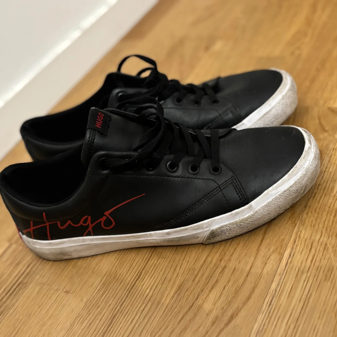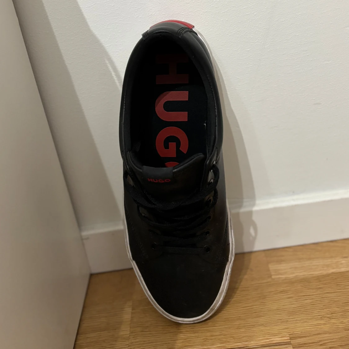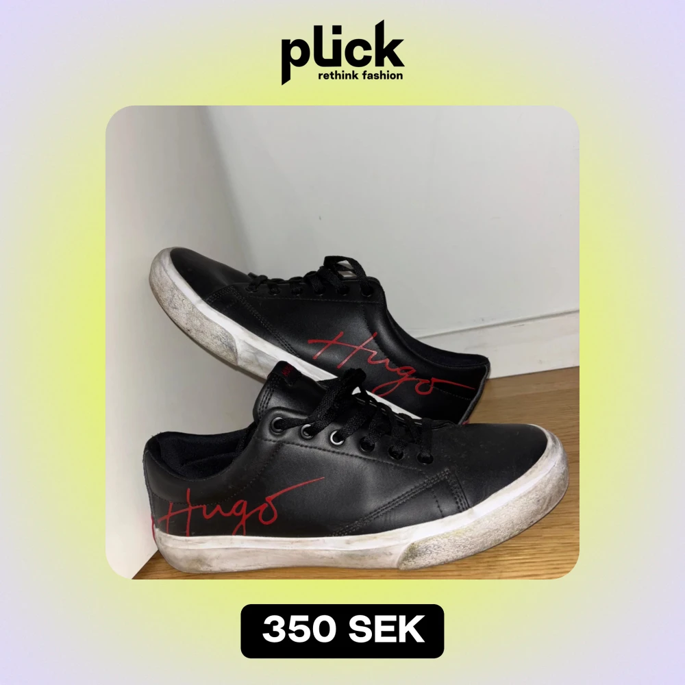 Säljer dessa prydliga HUGO sneakers i storlek 42. Använd ett fåtal gånger och är i mycket fint skick, skulle behöva tvätta sulan men annars toppenbra.