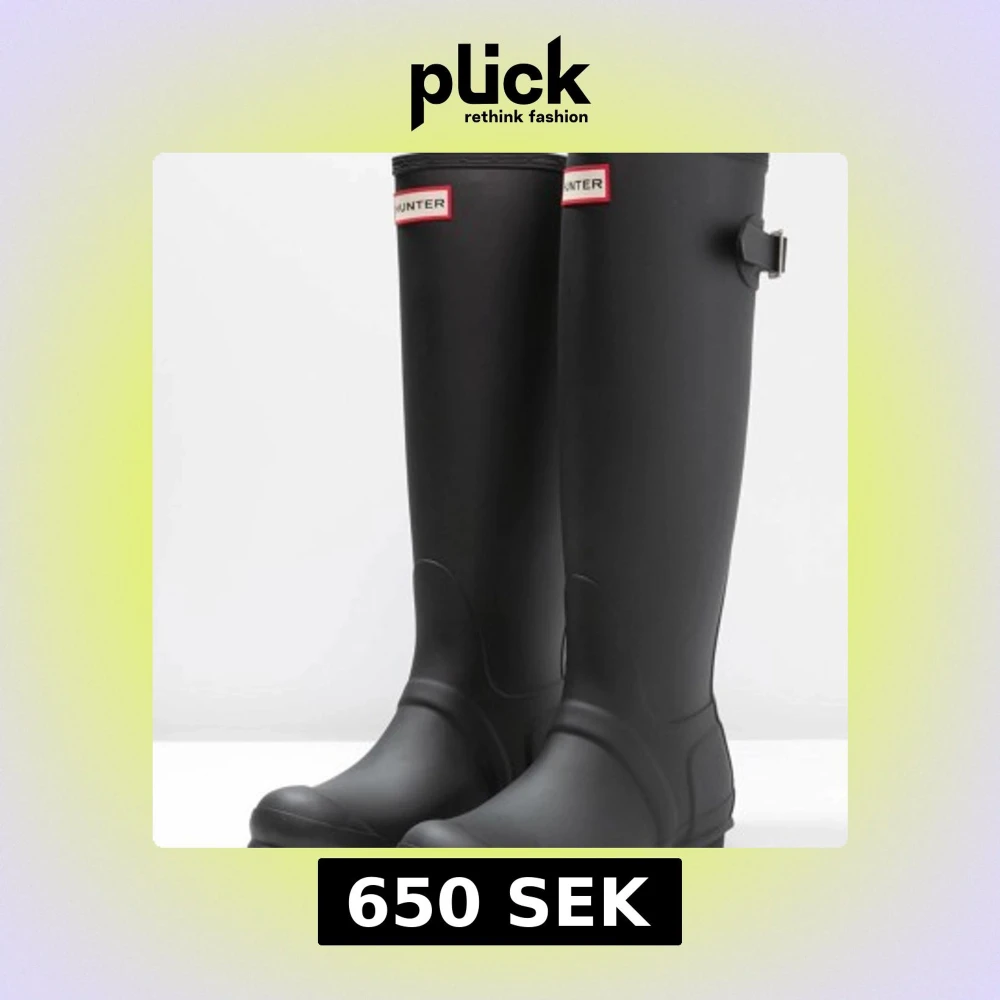 Klassiska svarta höga stövlar från Hunter med rund tå och justerbart spänne på sidan. Tillverkade i slitstark syntet som håller dig torr i regnet. Perfekta för blöta dagar och stilrena till alla outfits.