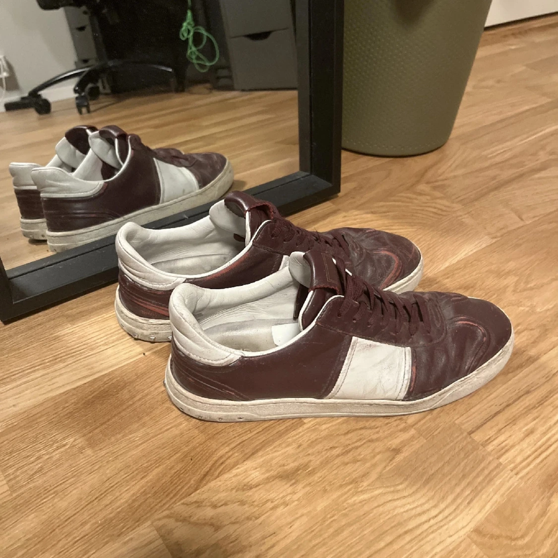 Tja! Säljer nu dessa stilrena vinröda flycrews i skinn. Dojorna är i halv bra skick med små defekter som går o få bort hur lätt som helst ❗️ | Nitar medföljes ej 📦 | Tar emot bud! 📬 (fråga inte vad jag gjort med dom men man ser ju på de andra bilderna att skicket har gått ner en hel del 😊)