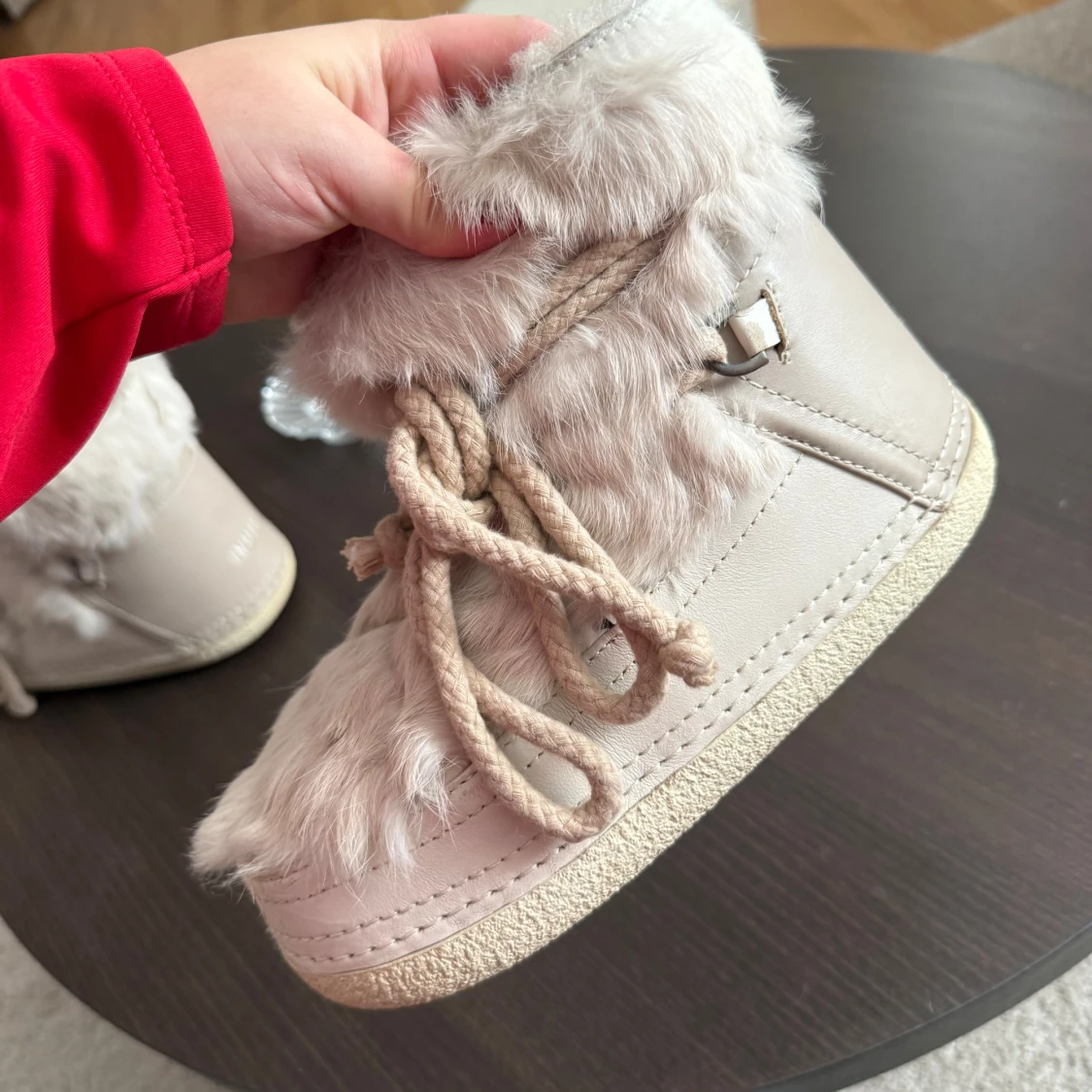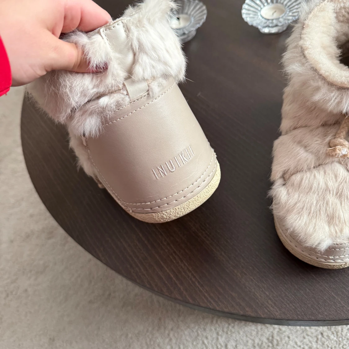 Säljer ett par supermysiga boots från Inuikii i beige med pälsdetaljer och snörning framtill. Skorna har en rund tå, platt sula och är fodrade med mjuk päls för extra värme. Perfekta för kalla dagar och ger en riktigt trendig vinterlook. I fint skick.💕