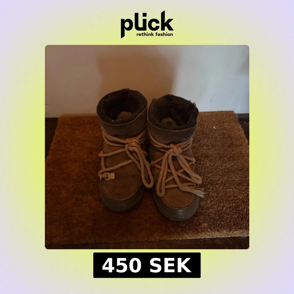 Jätte mysiga Inuikii snow boots, perfekta för vintern. Använda ganska mycket men väldigt fin kvalité fortfarande. De har ett snöre som lossnar längst ner på ena skon, men det kan man fixa lätt med lite lim eller hos en skomakare.