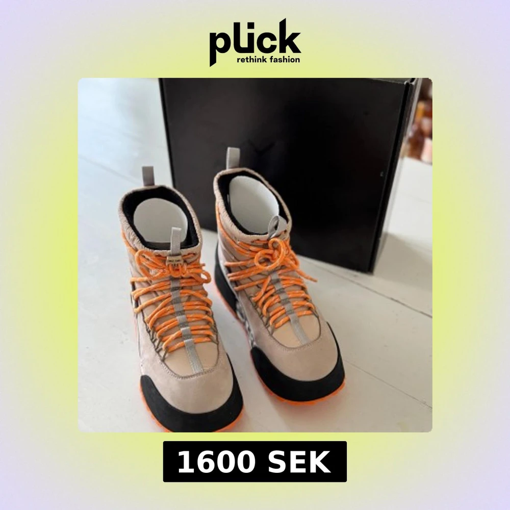 Helt nya i kartong. Snygga boots i beige med orange detaljer och snörning. Skorna har en robust vibramsula med orange mönster och svart förstärkning vid tån. Perfekta för svensk vinter. Nypris 4390 kr. Rea online nu för 2670. Mitt pris 1600