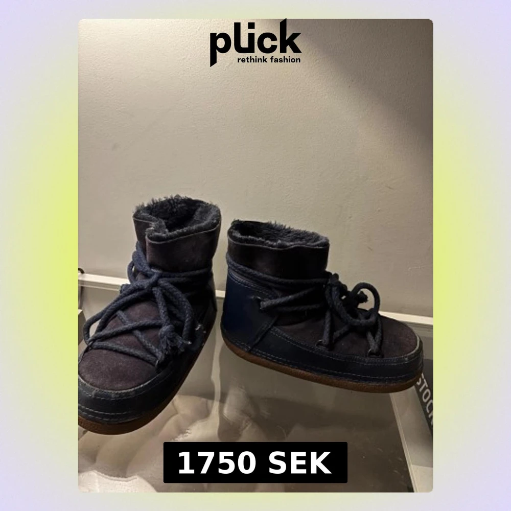 Moon boots från Inuikii i mörkblå färg Utsidan är i mocka och skinn, insidan är fodrad med mjuk päls för extra värme. Använda förra vintern men inga större skråmor och väldigt fina Storlek 38 Nypris 3800kr