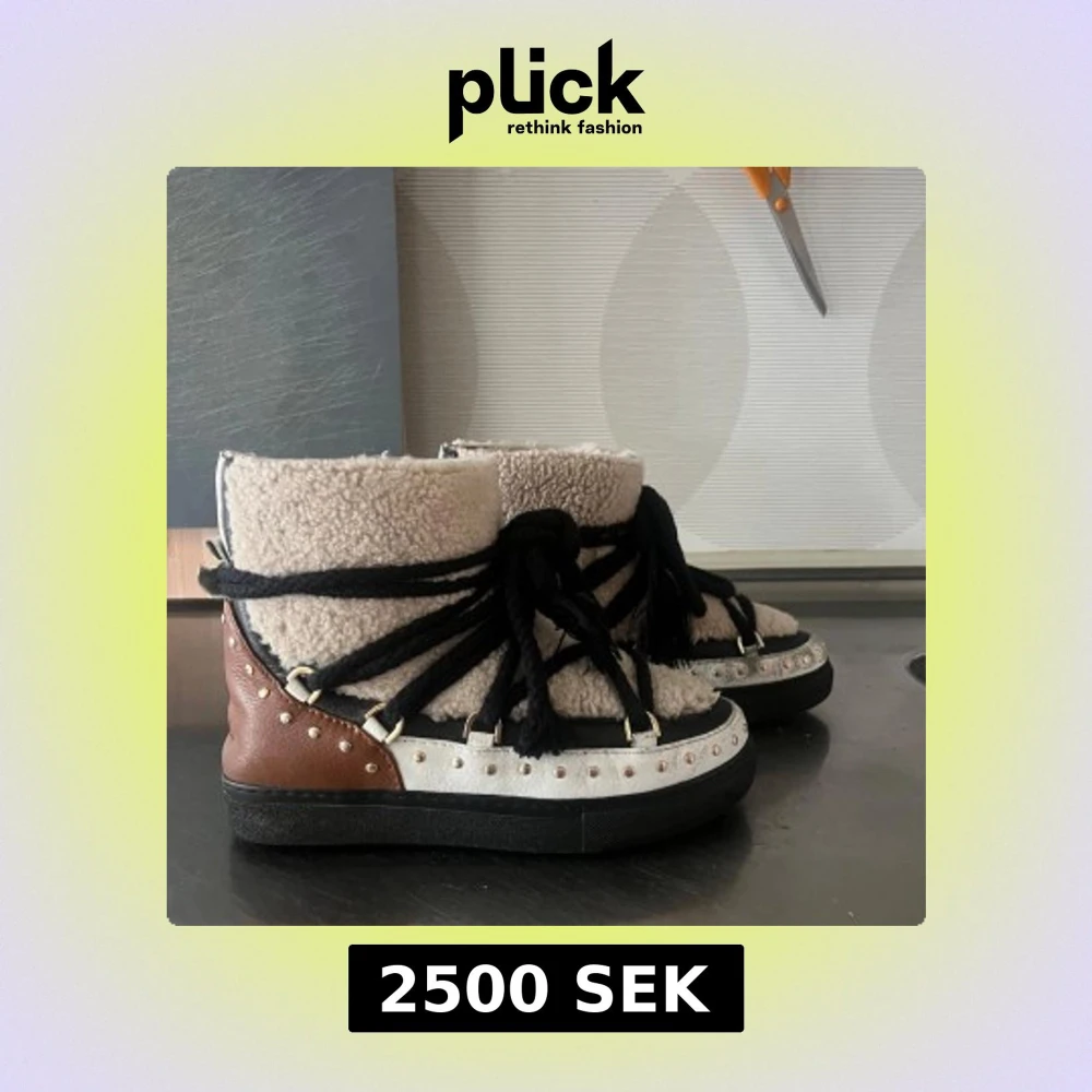 Nypris runt 4000 kr, endast använda max 10 gånger. Dem var inga fel eller märken! Storlek 36 men passar upp till 38 Som nya Snygga och varma boots med en unik design. De har en beige och brun färgkombination med svarta snören. Skorna är dekorerade med nitar och har en mysig fodring som ger extra värme. Perfekta för kyligare dagar.