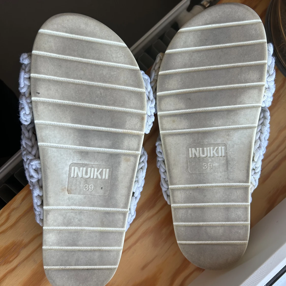 Säljer dessa tofflor från inuikii i använt skick och därav finns tecken på användning (se bilder) annars superfina och perfekta inför sommaren