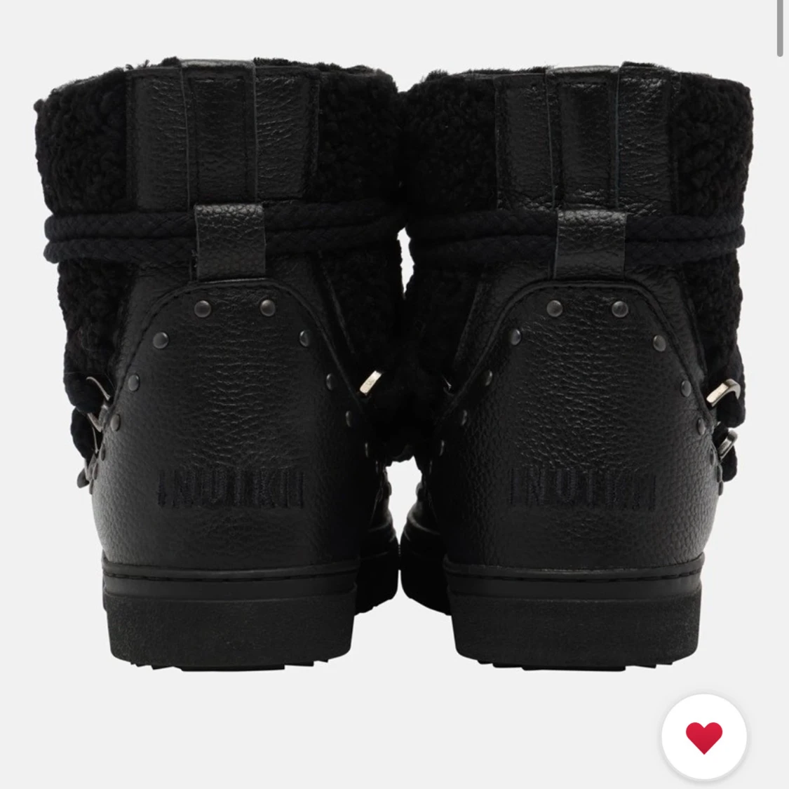 Säljer ett par svarta boots från Inuikii med grov snörning och nitar runt sulan. Ovandelen är i fårull och skinn, insidan är fodrad med mjuk päls. Använt förr vintern, så i använt skick, kan skicka egna bilder. Vissa nitar saknas. Nypris ca 3500
