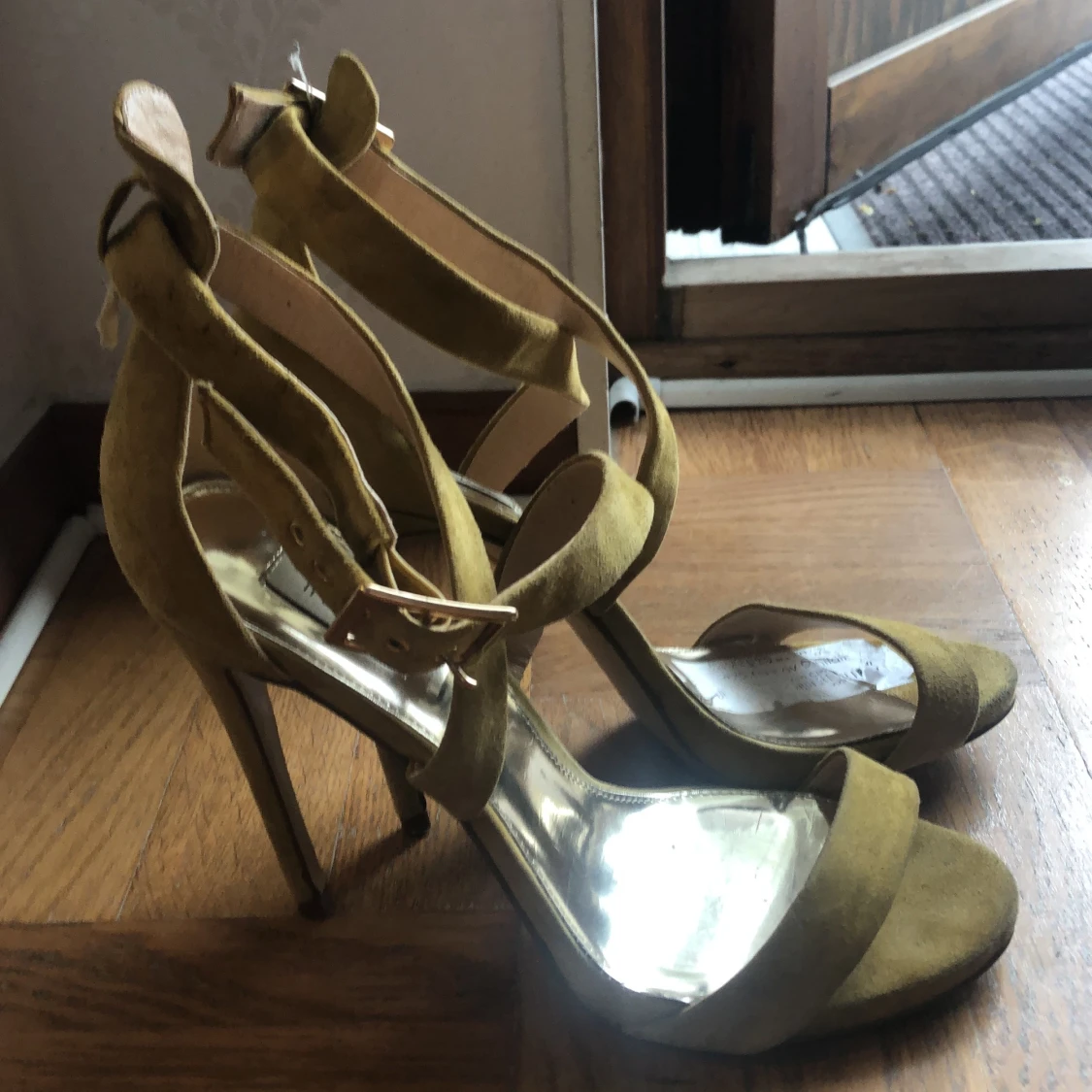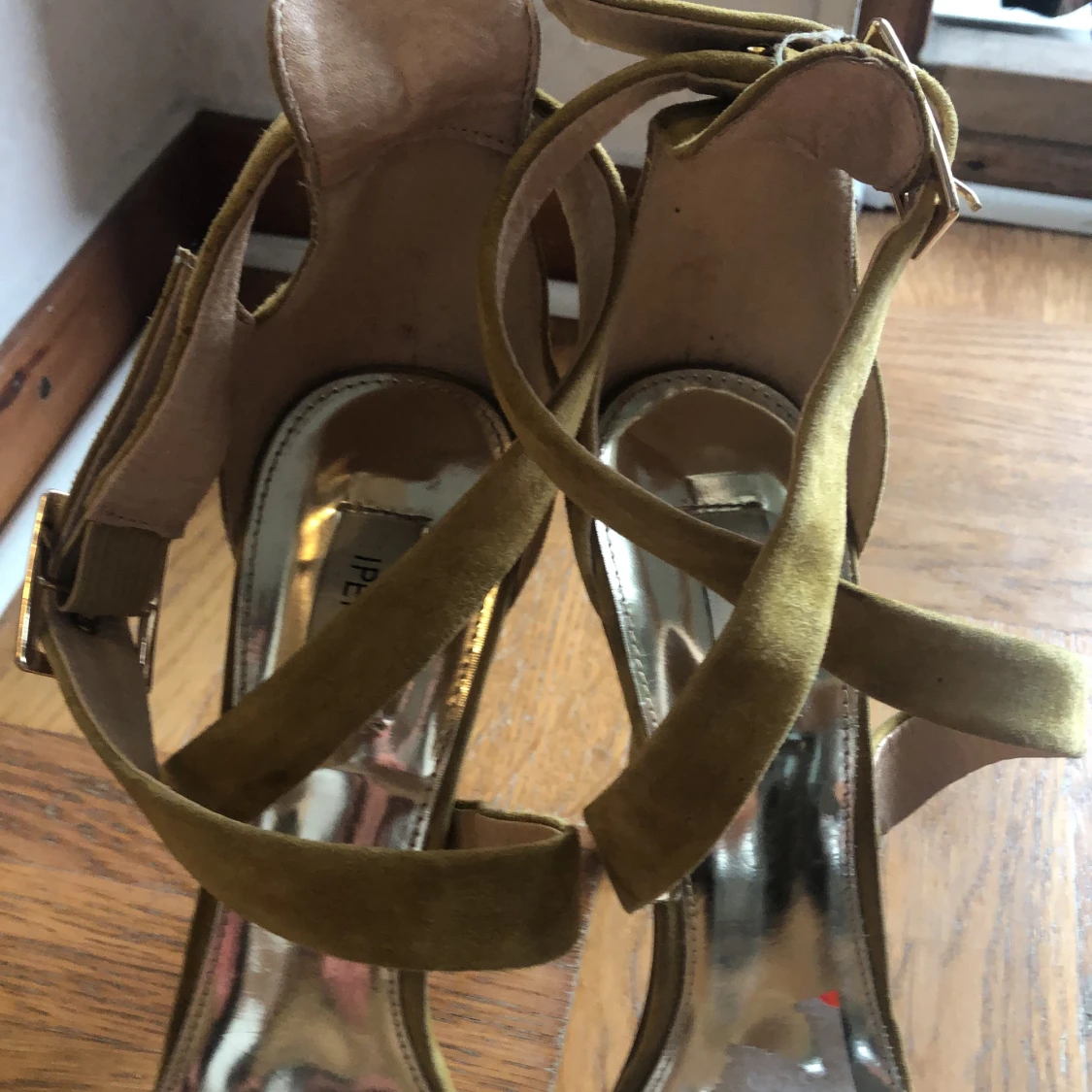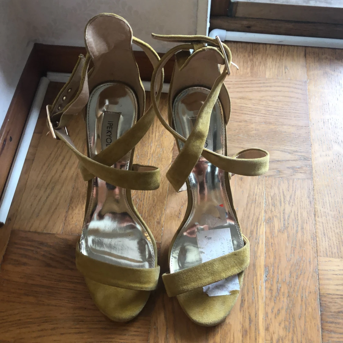 At least 10cm high platform and needle heels. Looks very elegant under long dresses and bootcut pants