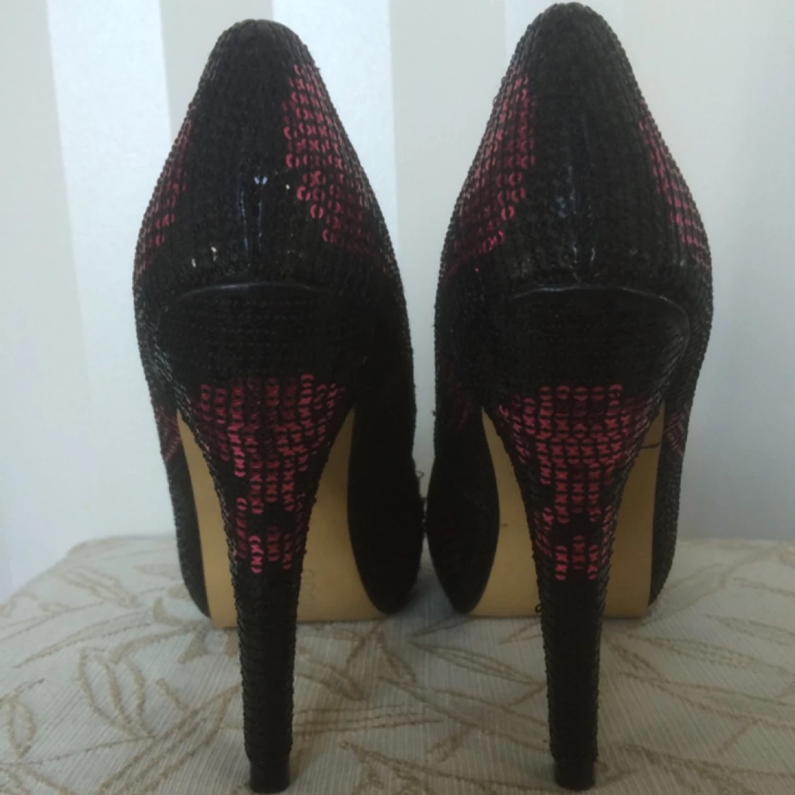 Endast använda vid plåtning, lite skavd på insidan av den högra skon. Inget som syns.