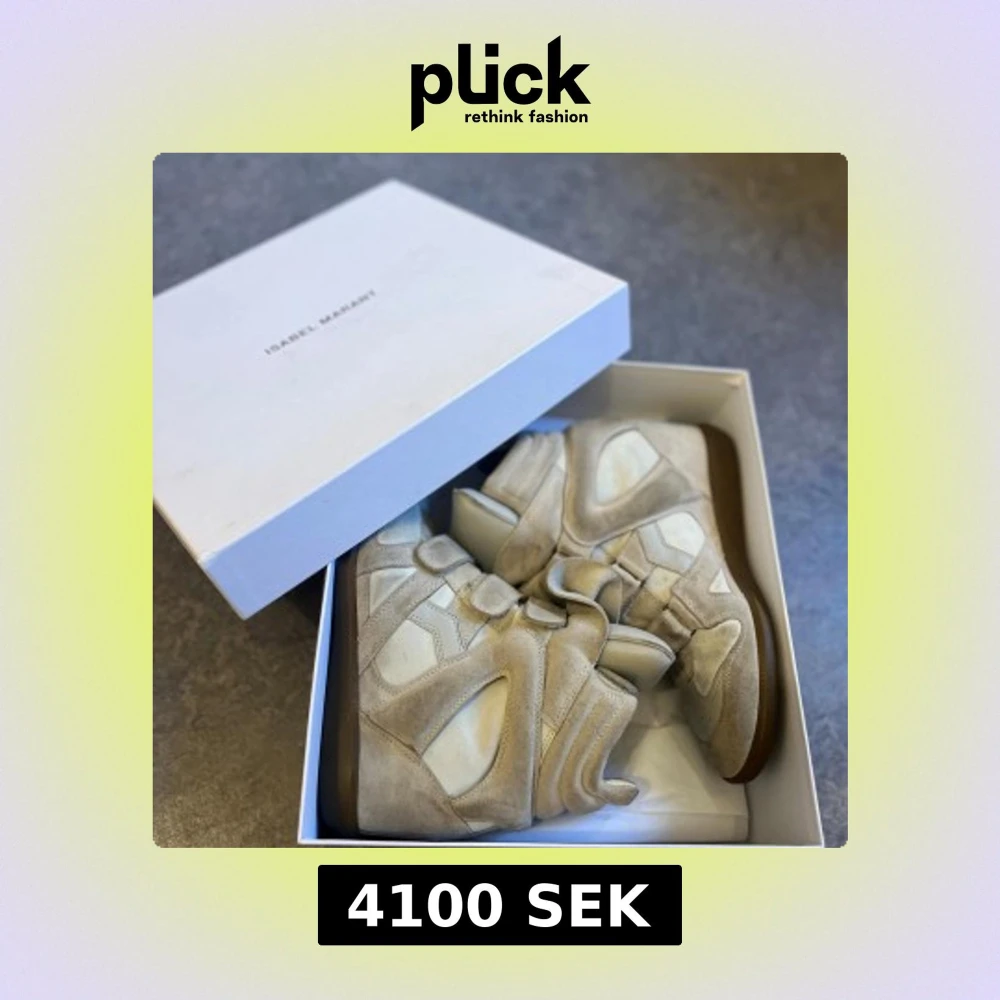 Säljer ett par ikoniska Isabel Marant Bekett sneakers i beige mocka och skinn. Skorna har inbyggd kilklack, kardborreband och coola paneldetaljer. Perfekta för dig som vill ha en sportig men ändå trendig look.