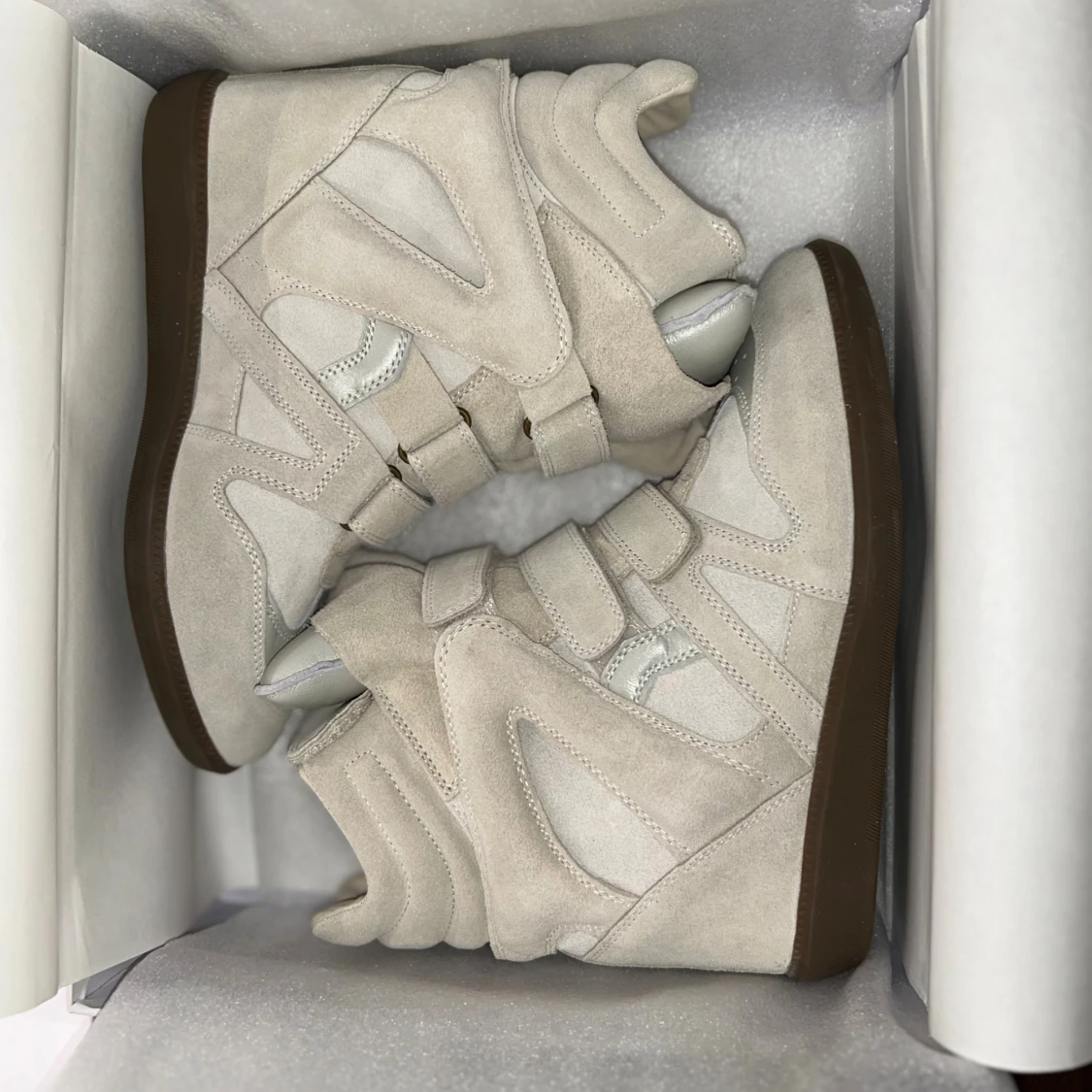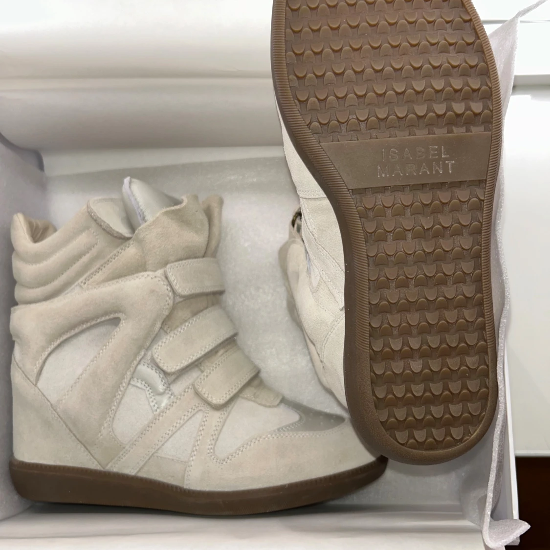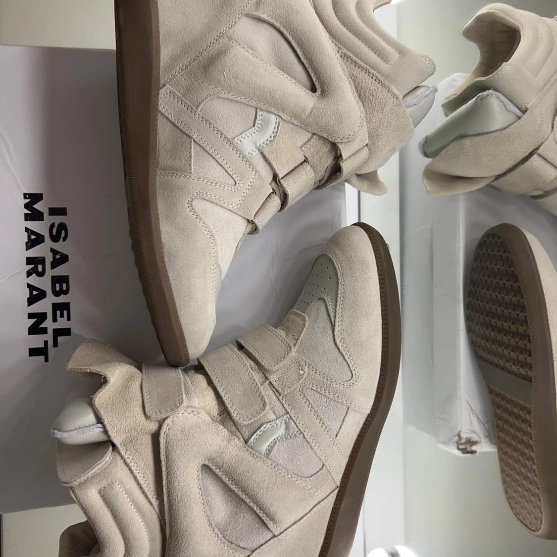 Säljer ett par Isabel Marant skor i en vacker beige nyans, helt nya och aldrig använda! Fick dem i present av min moster, men tyvärr är de inte riktigt min stil – så nu hoppas jag att de får komma till någon som verkligen kommer älska dem💕. Dm för mera bilder, pris kan diskuteras🩷🤗 ( boxen gick tyvärr sönder genom leveransen)
