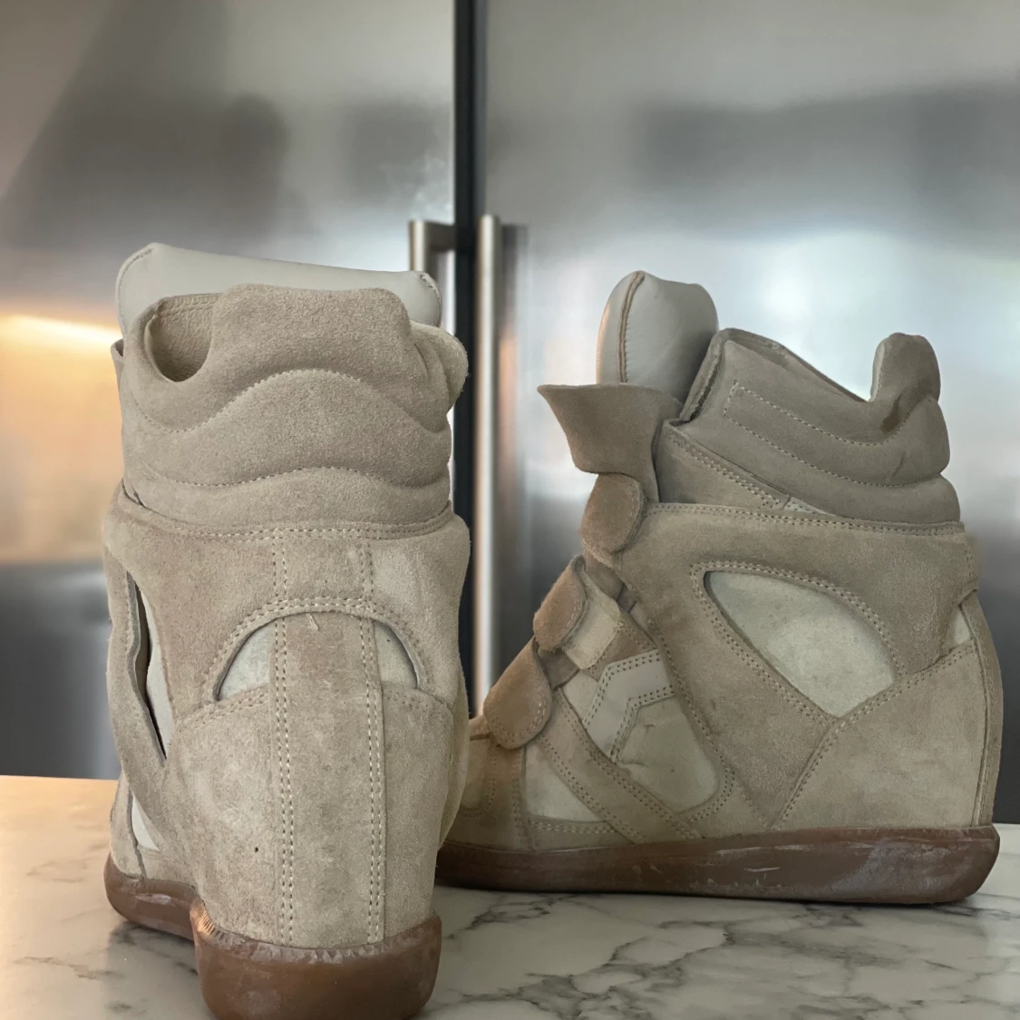Beiga Isabel Marant Wedge Sneakers. Sparsamt använda. Storlek 39. Låda finns kvar. Köpta på MyTheresa.