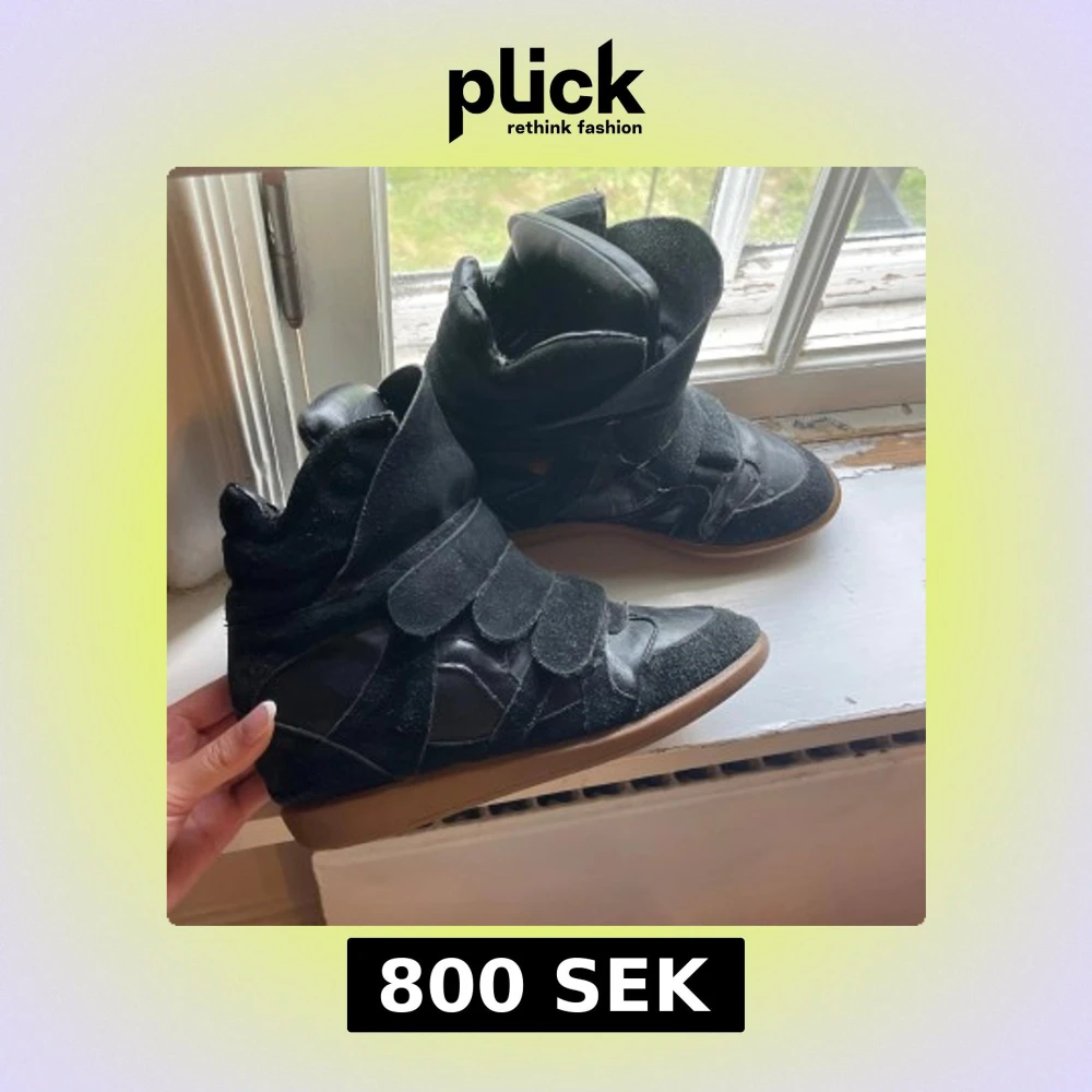 Snygga skor med inbyggd klack som är inspirerade av Isabel Marant, tyvärr vet jag inte märke på dessa, dom har lite små slitage därför har jag gått ner en del i priset men det går fortfarande att diskutera💞 Vet inte exakt storlek men skulle gissa på 37/38