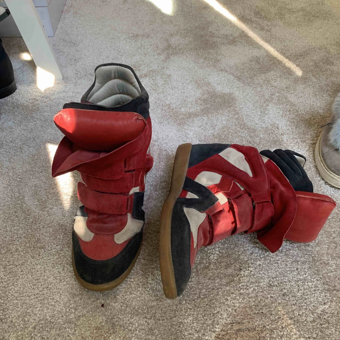Ett par Isabel Marant Etoile skor i färgerna svart, rött och vitt/beige. Storlek 41 men 40/39 går bra. Använda i några år men i bra skick över lag.