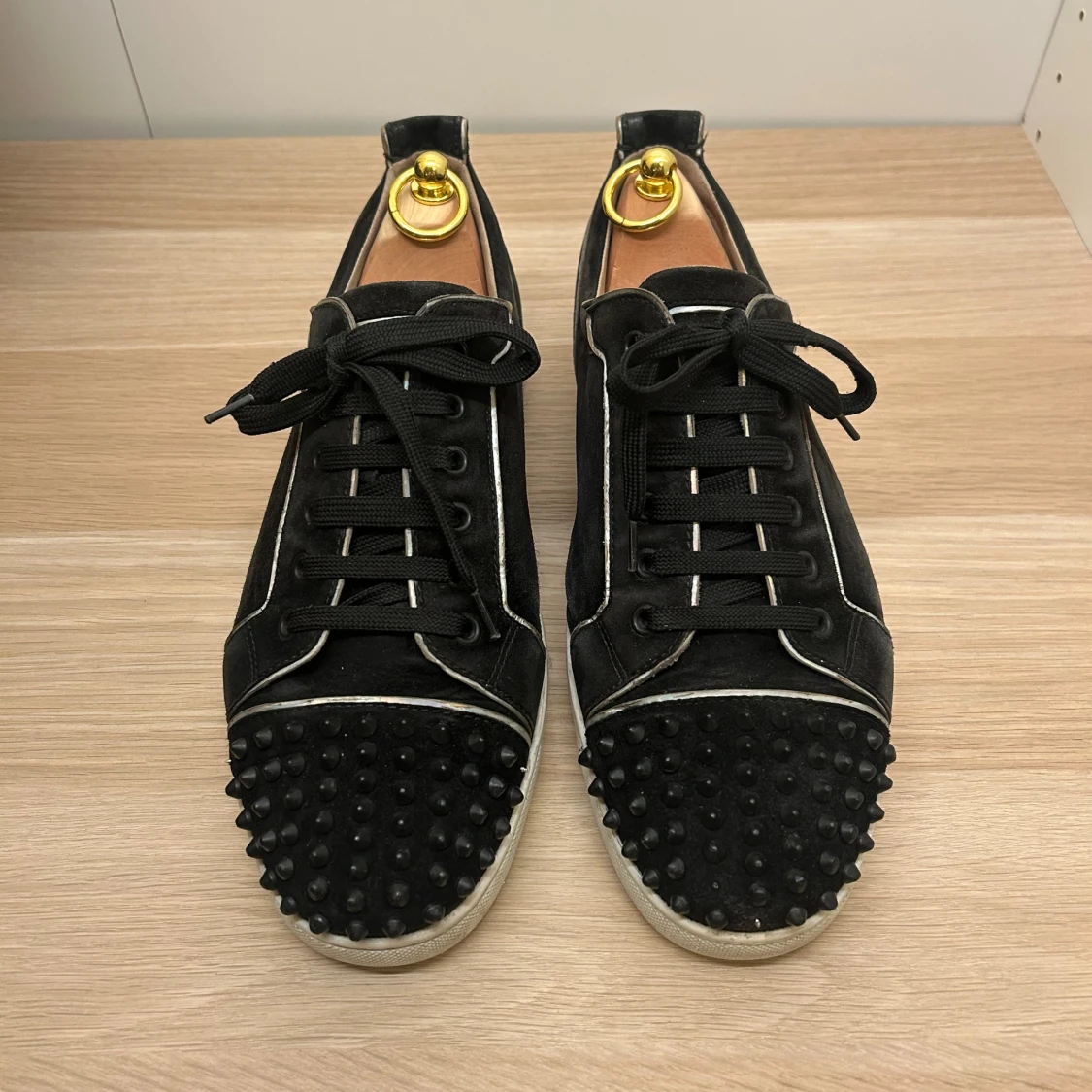 Ett par louboutin skor i fint skick | Modell: Junior low | Size: 43 | Skick: 8/10 | Defekter: fyra nitar saknas | Tillbehör: Nej | Nypris: 10 000:- | Tveka inte att kontakta mig vid frågor😁!