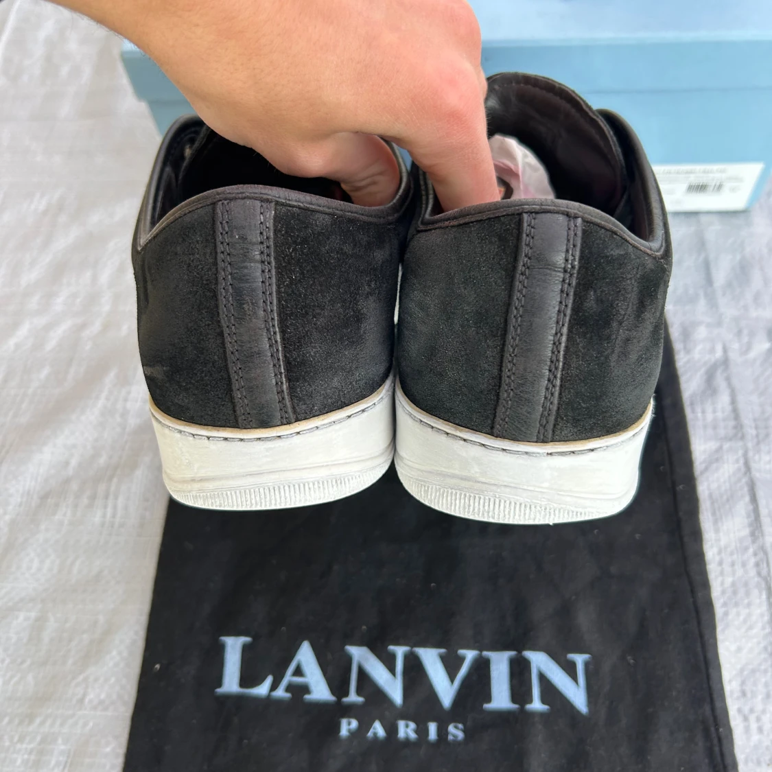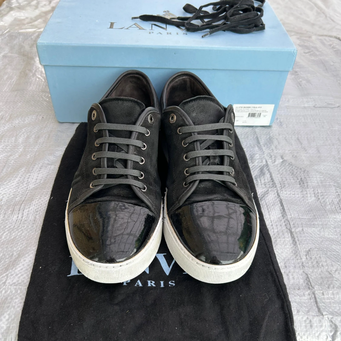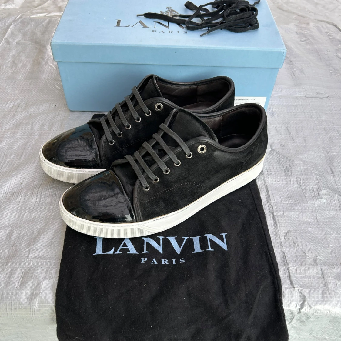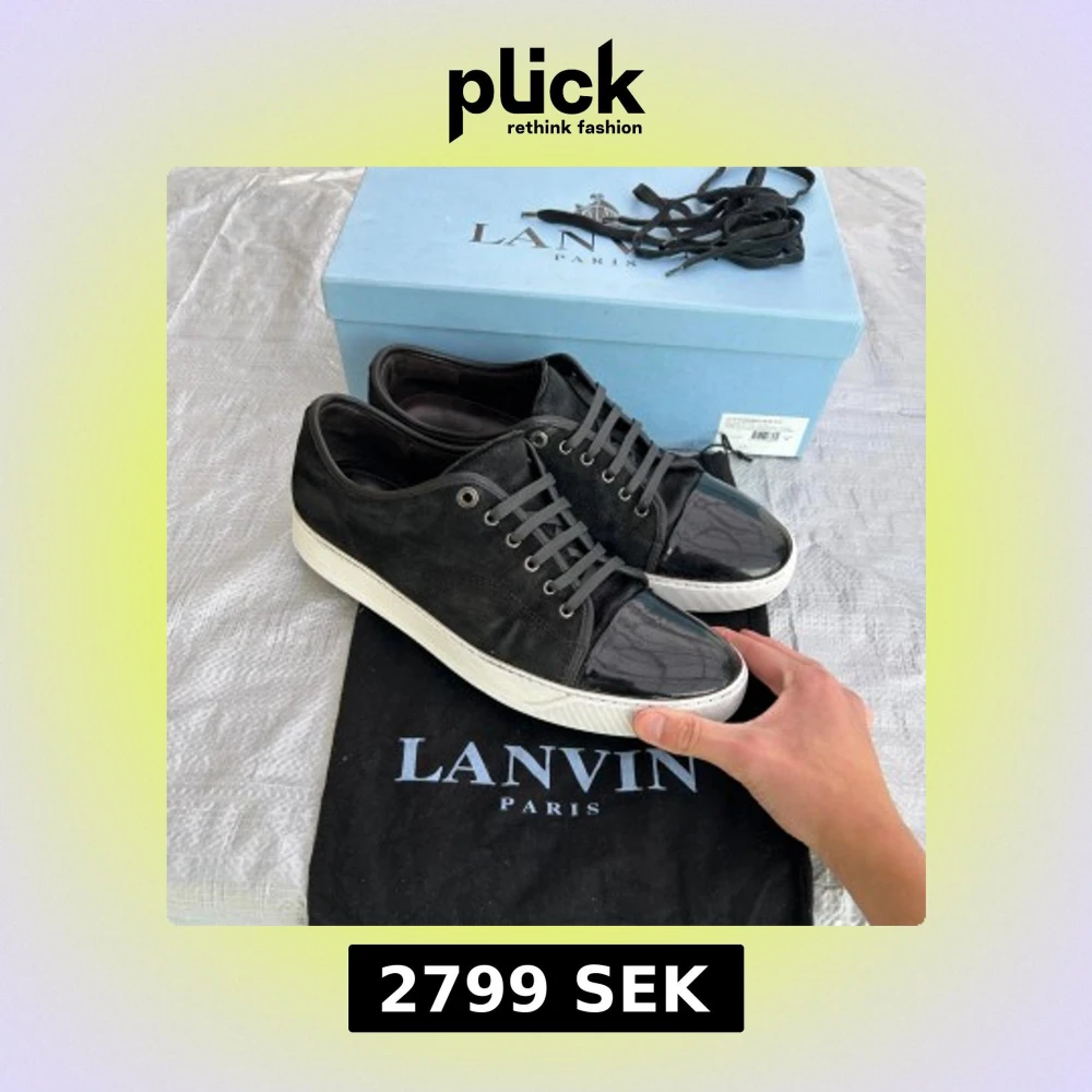 Säljer ett svart par Lanvins med lackad tå, i bra skick, storlek 45, uk11, det är sprillans nya snören på, man får med, box Dustbag och extrasnören, lite använt mocka på vissa ställen och sulan är lite använd, och en jätteliten defekt på captoen som inte ens syns på bilderna, sulkräm har använts, pris går att diskutera✅
