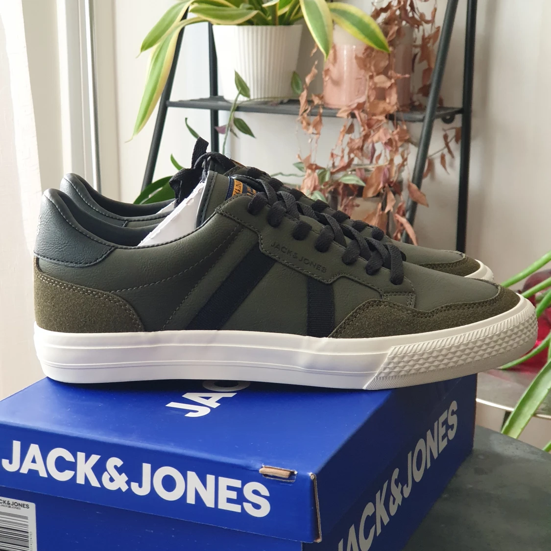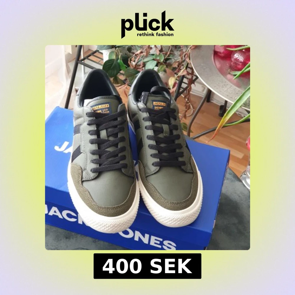 Snygga gröna sneakers från Jack & Jones med svarta detaljer och vit sula. Skorna har snörning och en stilren design som passar perfekt till vardags. Perfekta för dig som vill ha en bekväm och trendig look.