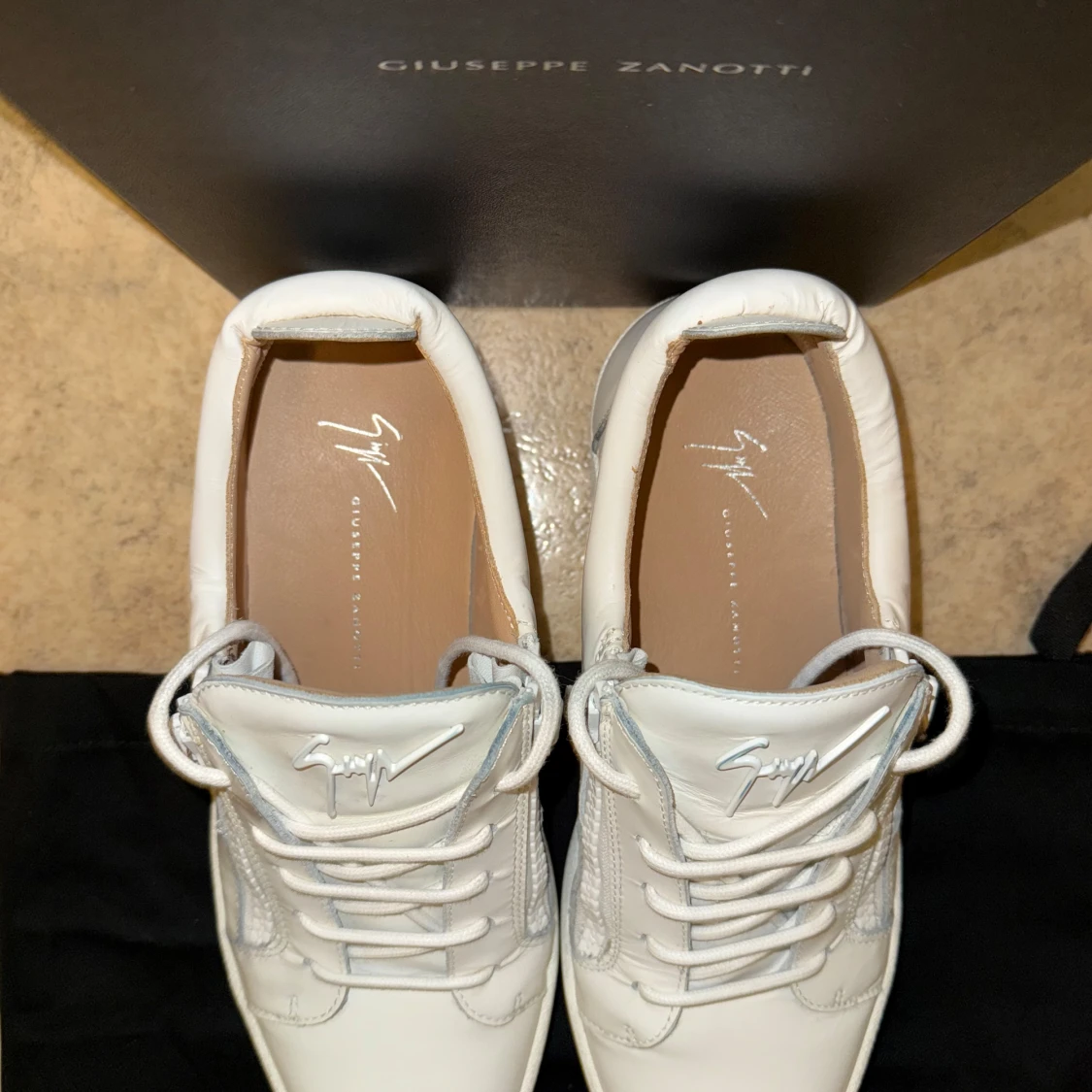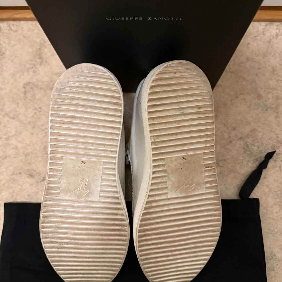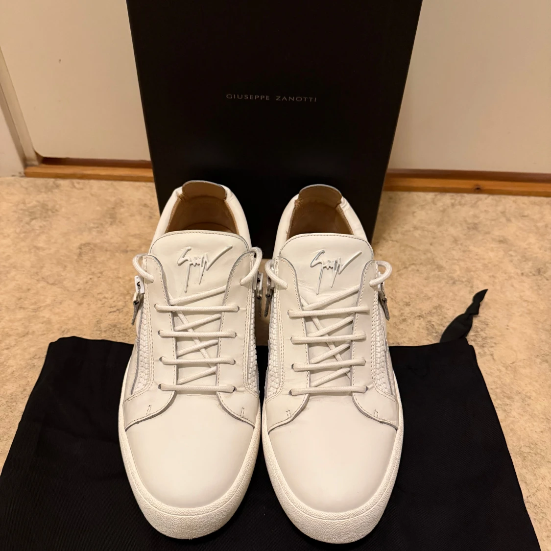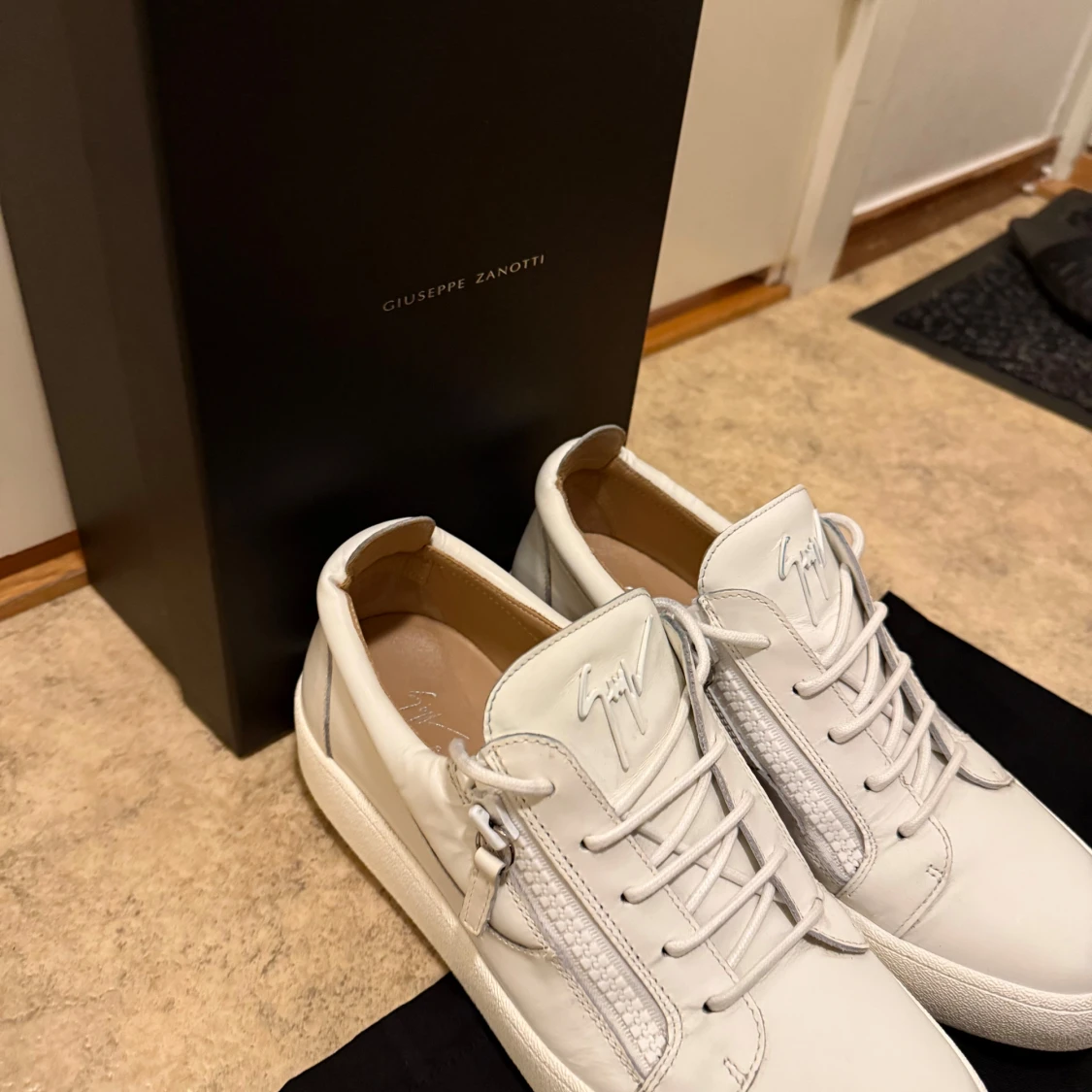 Ett par hel vita Giuseppe Zanotti Skor tillvärkade i äkta kalvskinn från Italien 🇮🇹 . Väldigt fräscha och rena utan defekter då de endast är använda 2 gånger. Skick 9,5/10. Storlek 42 men kan även passa 43! Allt og medföljer (Box, dustbag, och certifikat osv). Skorna är självklart äkta! Hör jätte gärna av er vid eventuella frågor eller bytesförslag! 🤩🤝