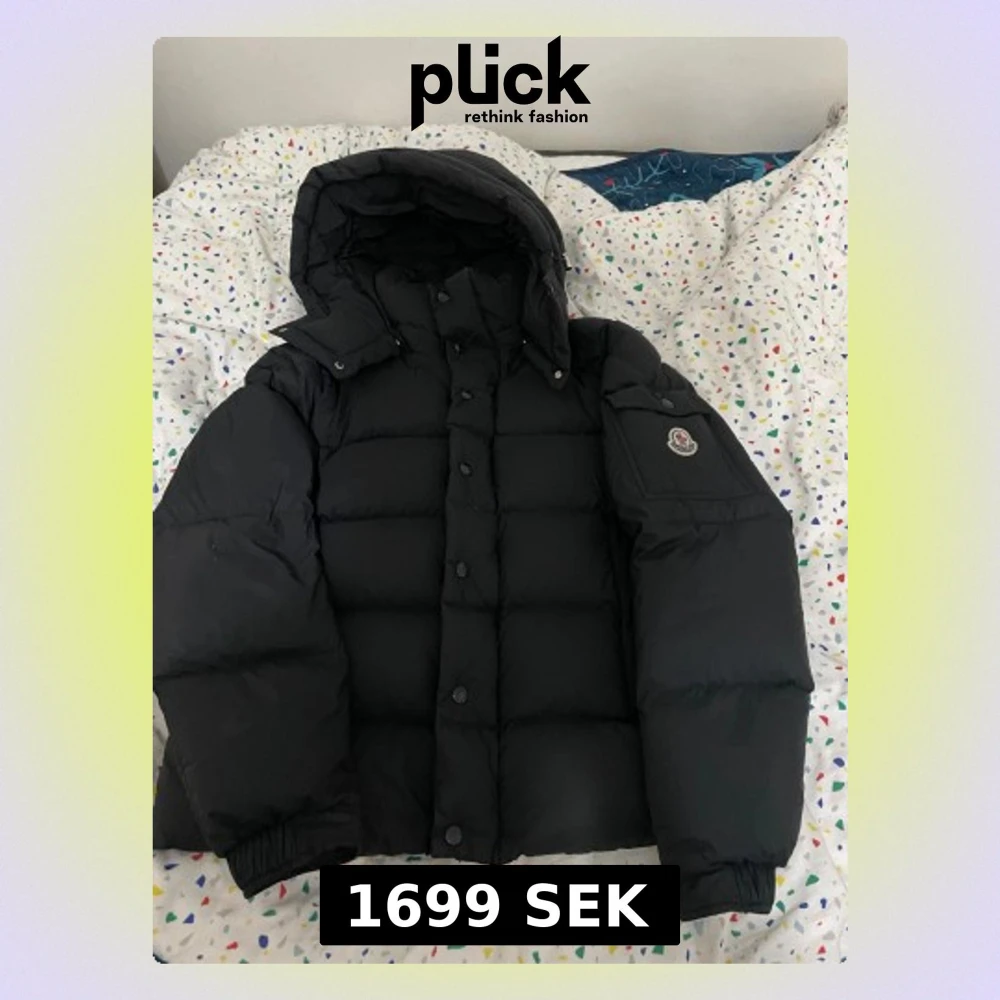 Säljer en svart pufferjacka från Moncler med stor huva och snygga knappar framtill. Jackan har en ficka med Moncler-logga på ärmen och är riktigt fluffig och varm. Perfekt för kalla dagar och har en cool, modern look. Den är använd i en månad ungefär, inga som helst fel på den. Storlek 1=S