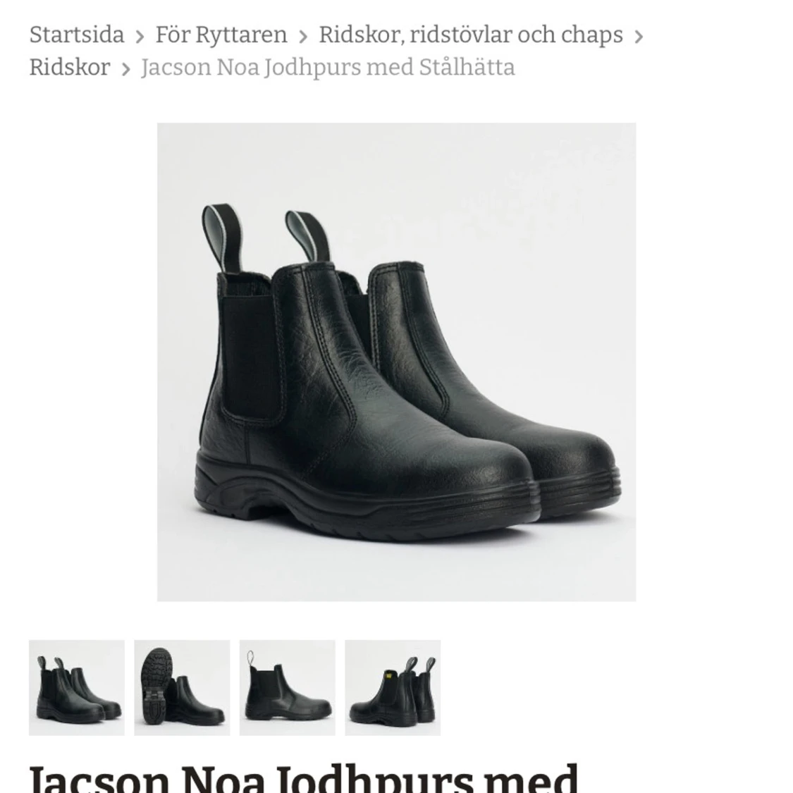 Säljer mina rid-/stallskor med stålhätta från Jacson. Skorna har använts ca 1 gång/vecka under 1 år, så de är i ett bra skick. Storlek 37, Nypris 999kr. Hämtas upp i Skara alternativt i Lidköping enligt överenskommelse. Kan skickas men köparen står då för frakten😊(Pris kan diskuteras)
