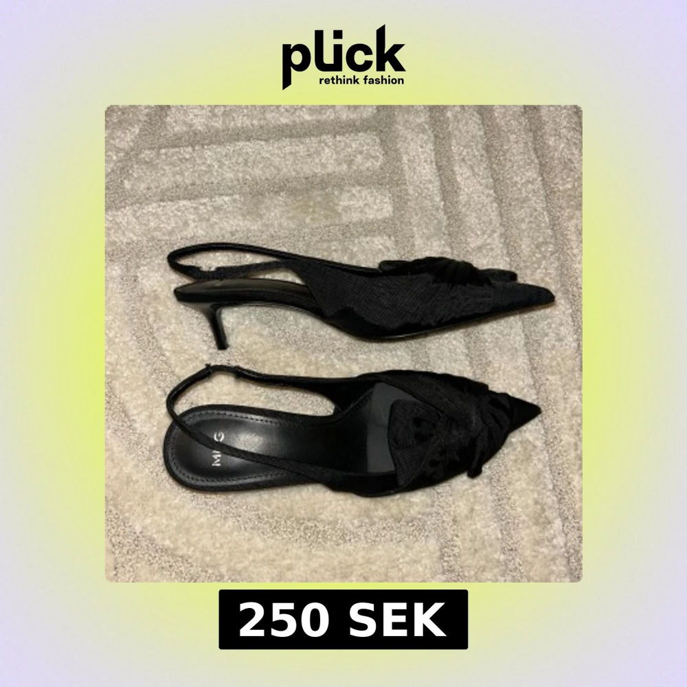 Snygga svarta MNG med elegant rosettdetalj framtill och spetsig tå. Skorna har låg klack och öppen häl med smal rem. Perfekta för dig som vill ha en stilren och trendig look.