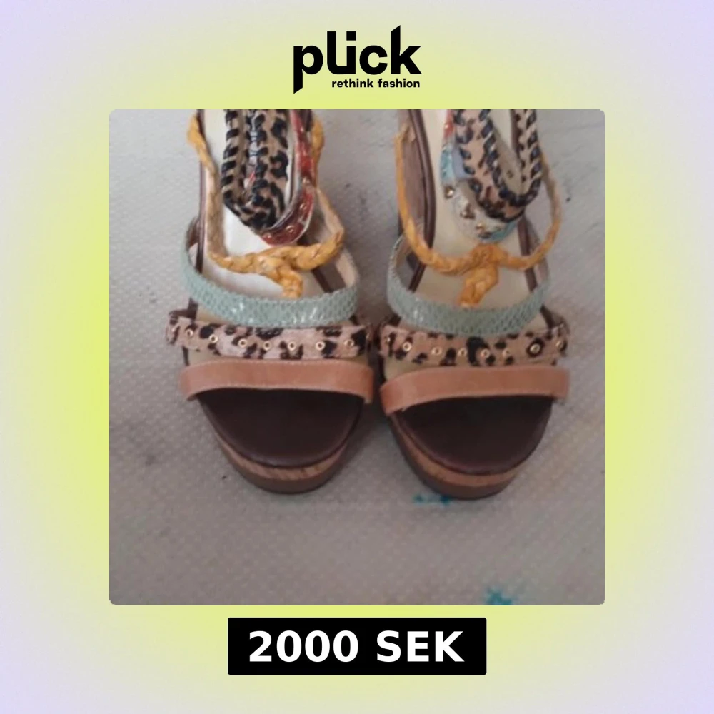 Unika sandaler från Jimmy Choo med hög kilklack i kork, flätade detaljer och flera färger som beige, gul och mintgrön. Remmarna har leopardmönster, nitar och ormskinnslook. Perfekta för dig som vill sticka ut med coola detaljer och plattform. nya oanvända. Köpa i USA