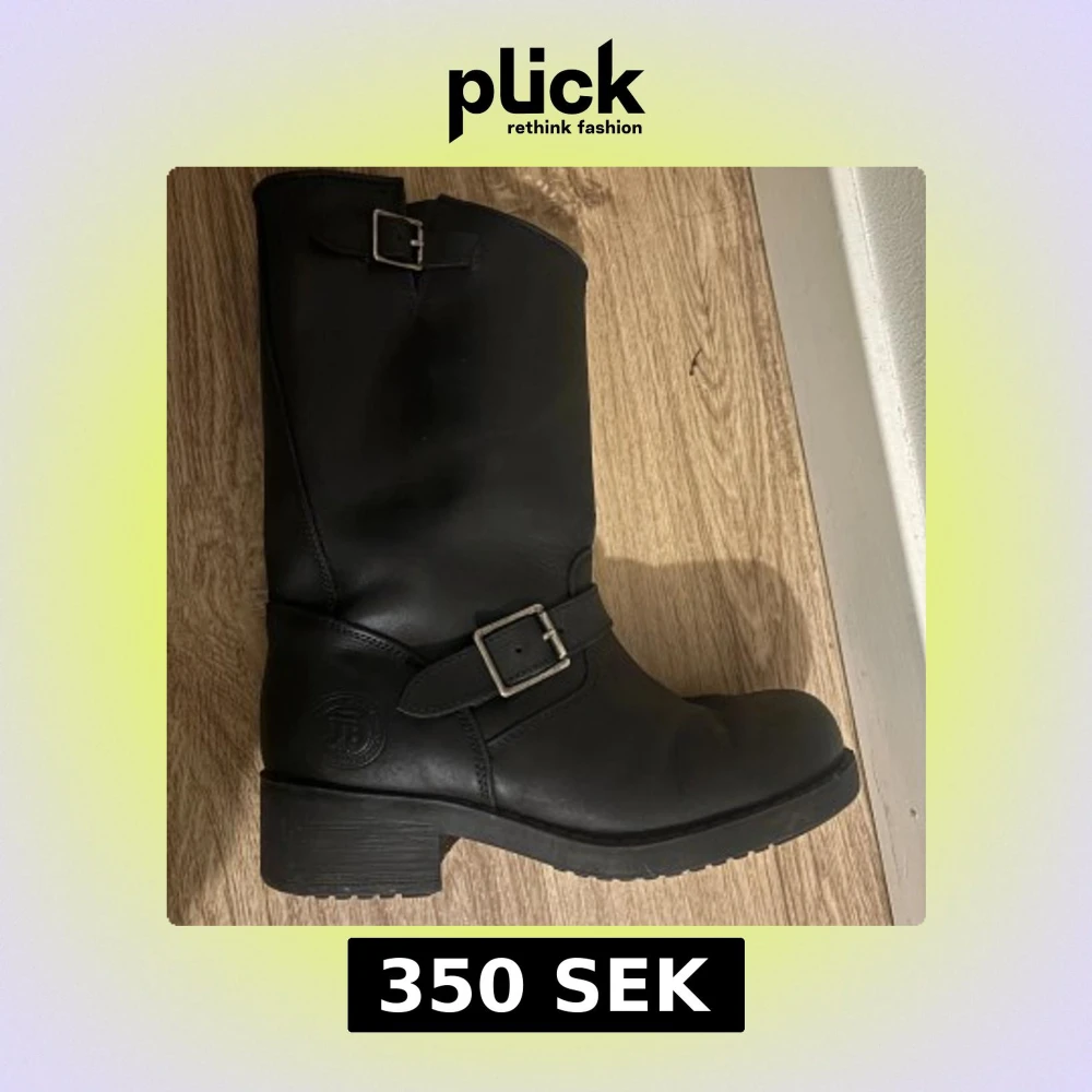 Säljer ett par svarta boots från JB med grov klack och rund tå. Skorna är tillverkade i skinn och har två silvriga spännen som snygg detalj. Insidan är fodrad med mjukt material för extra värme. Perfekt för kalla dagar och en cool stil.