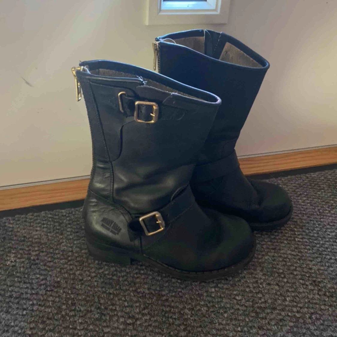 Mellanhöga Johnny bulls. Har något år på nacken därav ibland tröga dragkedjor. Storlek 35 men stora i storlek passar mig som har 36-36,5