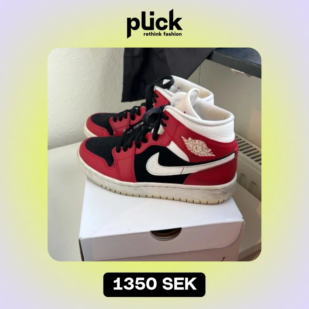 Red gym jordan 1 i storlek 38,5. Köpta på pardon my kicks för ca 3 år sedan. Använda men är fortfarande i väldigt bra skick. Helt äkta. Kommer i boxen den köptes i. Har ej kvar kvittot men det finns en QR kod på boxen som bevisar att de är äkta.