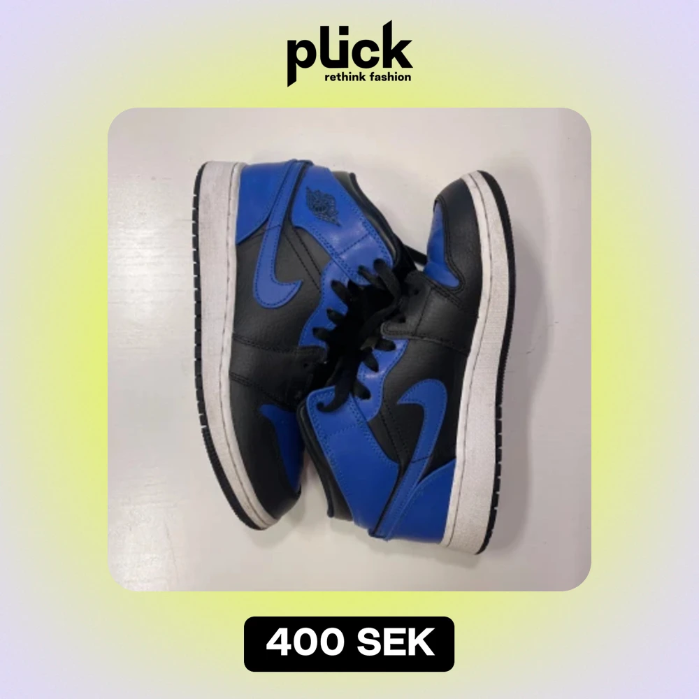 Sparsamt använda Jordan 1 mid i färgen Royal Blue. Fint skick i storlek 37.5 ,passar både kille och tjej. Nypris 1500kr men säljer för 400+frakt, kan också hämtas i Löddeköpinge.🦋