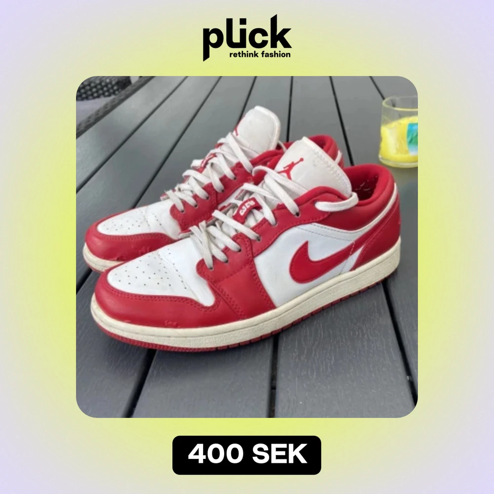 Jordan 1 Low Red/White Använda skor men ser fortfarande snygga ut på!