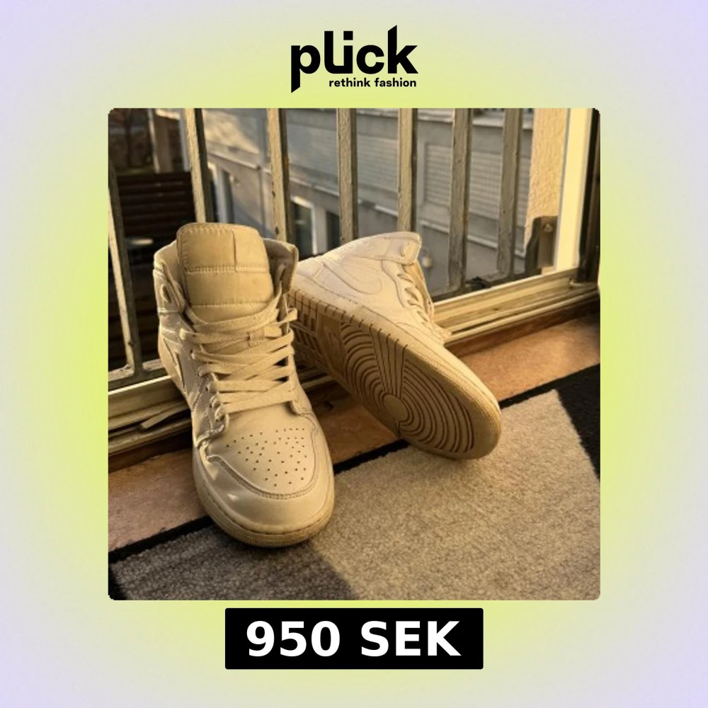 Snygga vita sneakers från Nike med hög modell och klassisk snörning. Skorna har två defekter då jag har spillt soppa på ovandelen och råkat köra skoter på sidan av skorn. Annars är skorna relativt nya. Skick 8/10