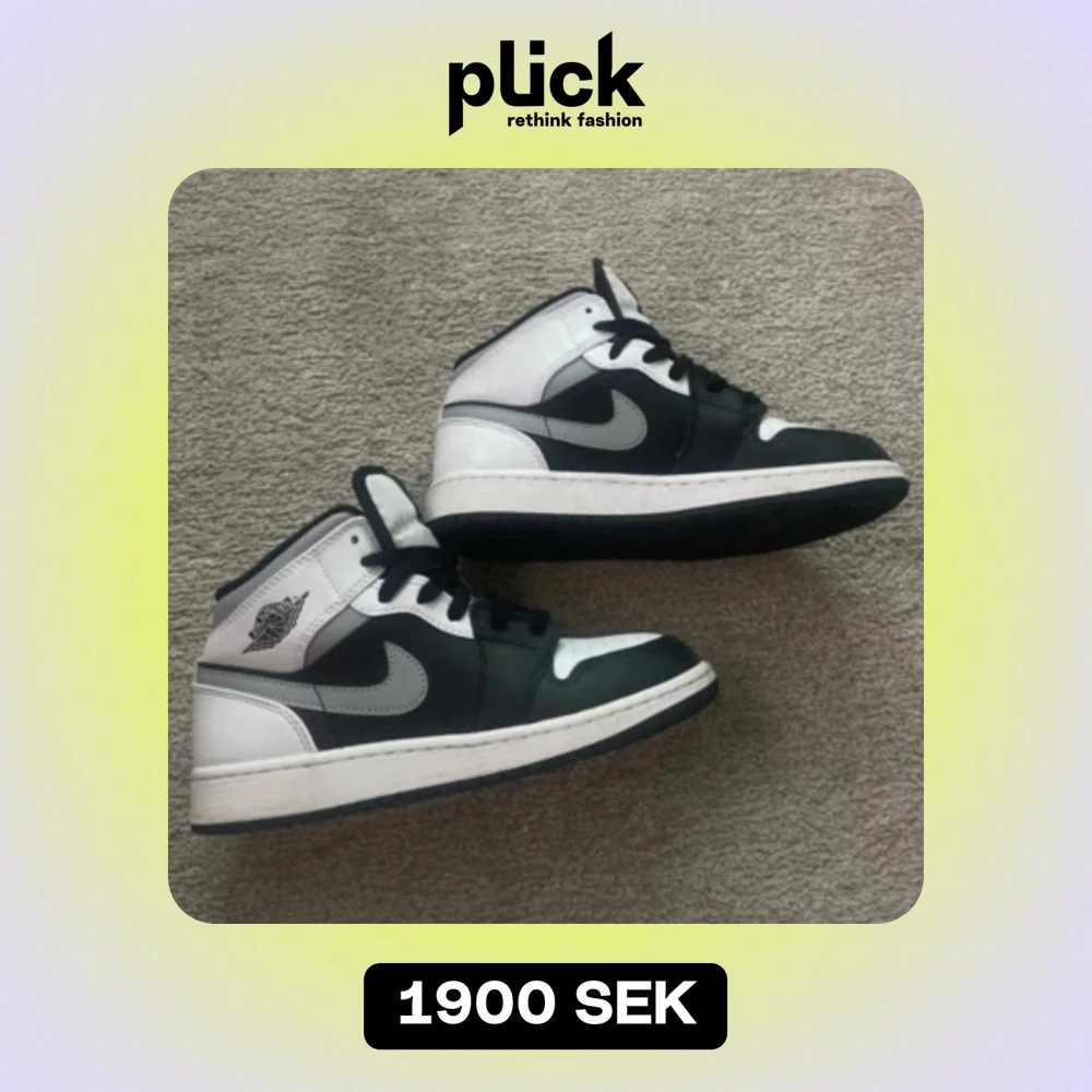 Jordan 1 Mids i färgen svart, vit och grå. Använda få antal gånger och i fint skick. Har dock slängt boxen vid flytt.