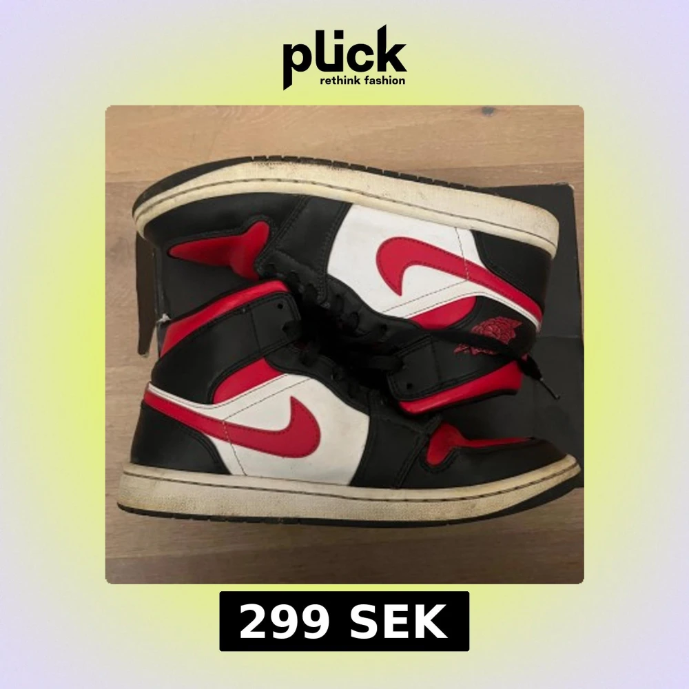 Säljer ett par Jordan 1. Skorna har lite slitningar på sulan men går att använda. De är äkta tillkommer box extra skosnoren och kvitto. Hör av er vid frågor