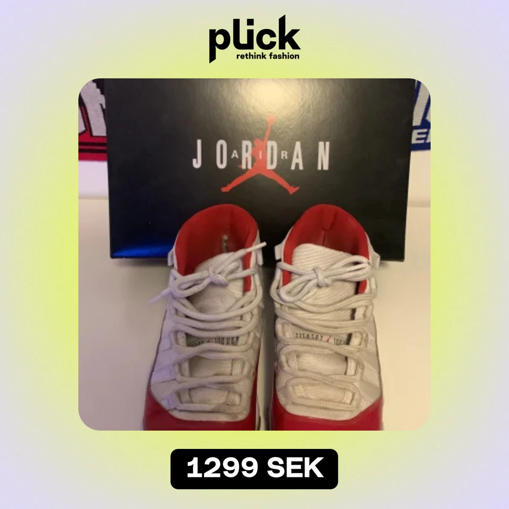 Jordan 11 red Cherry i 10/10 skick. Pris: 799 men det går att diskuteras. Nypris 3300. Låda medföljer.