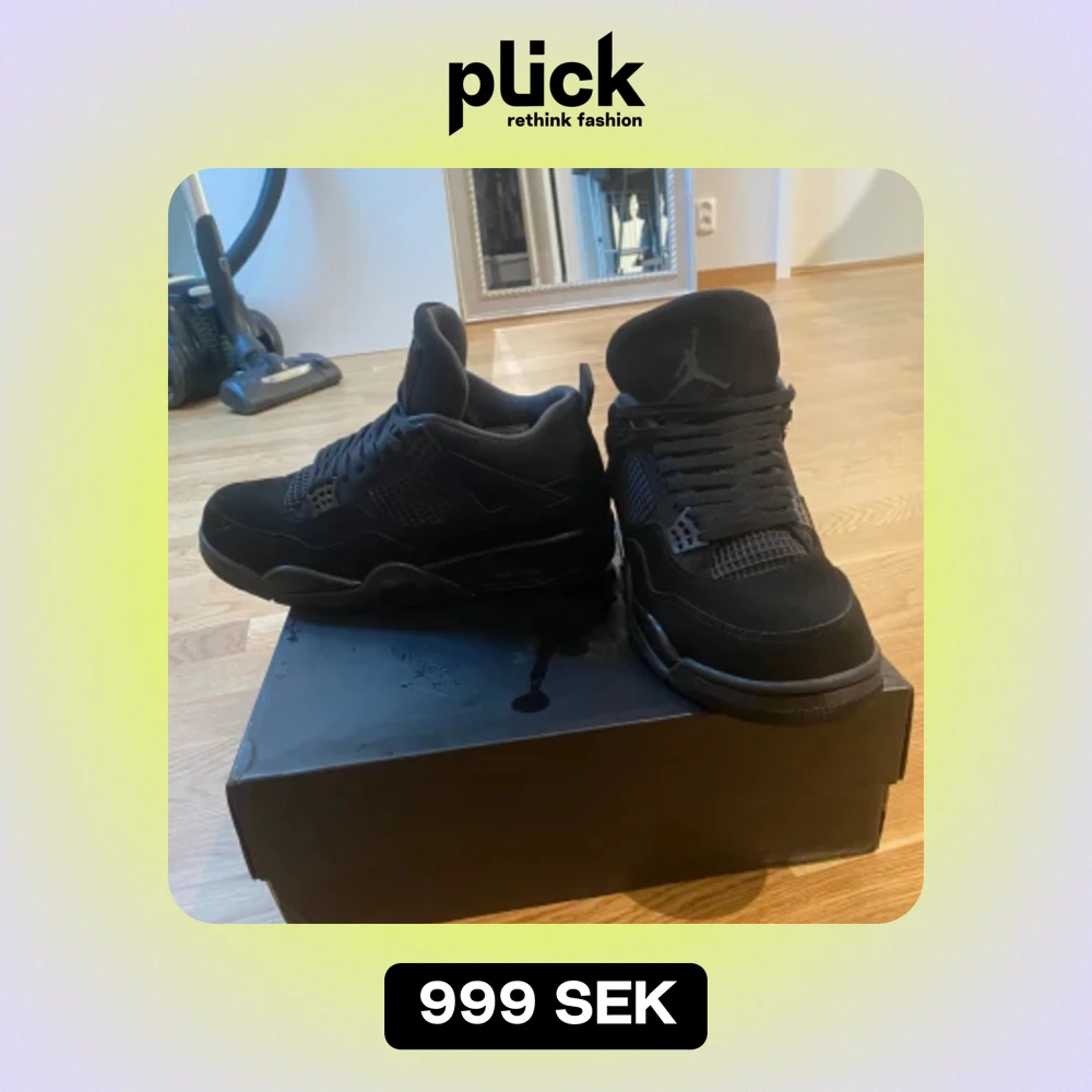 Kom med pris förslag.Jordan 4 retro black cats i braskick,storlek 44 men passar 43,använda i ganska lite så dom är i perfekt skick.