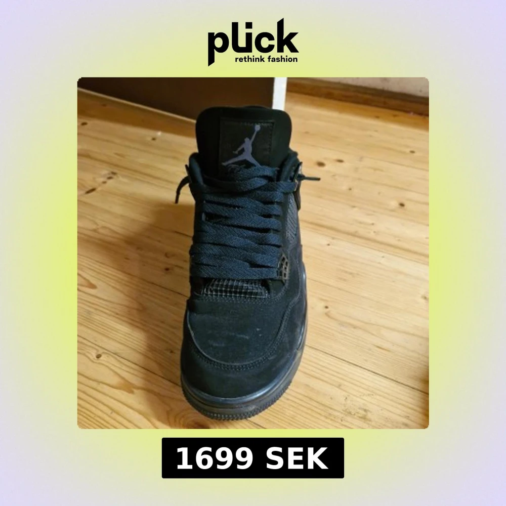 Jordan 4 Black Cat storlek 46 men går 45. Använd fåtal gånger. Kom med frågor och bud om ni är intresserade😁!