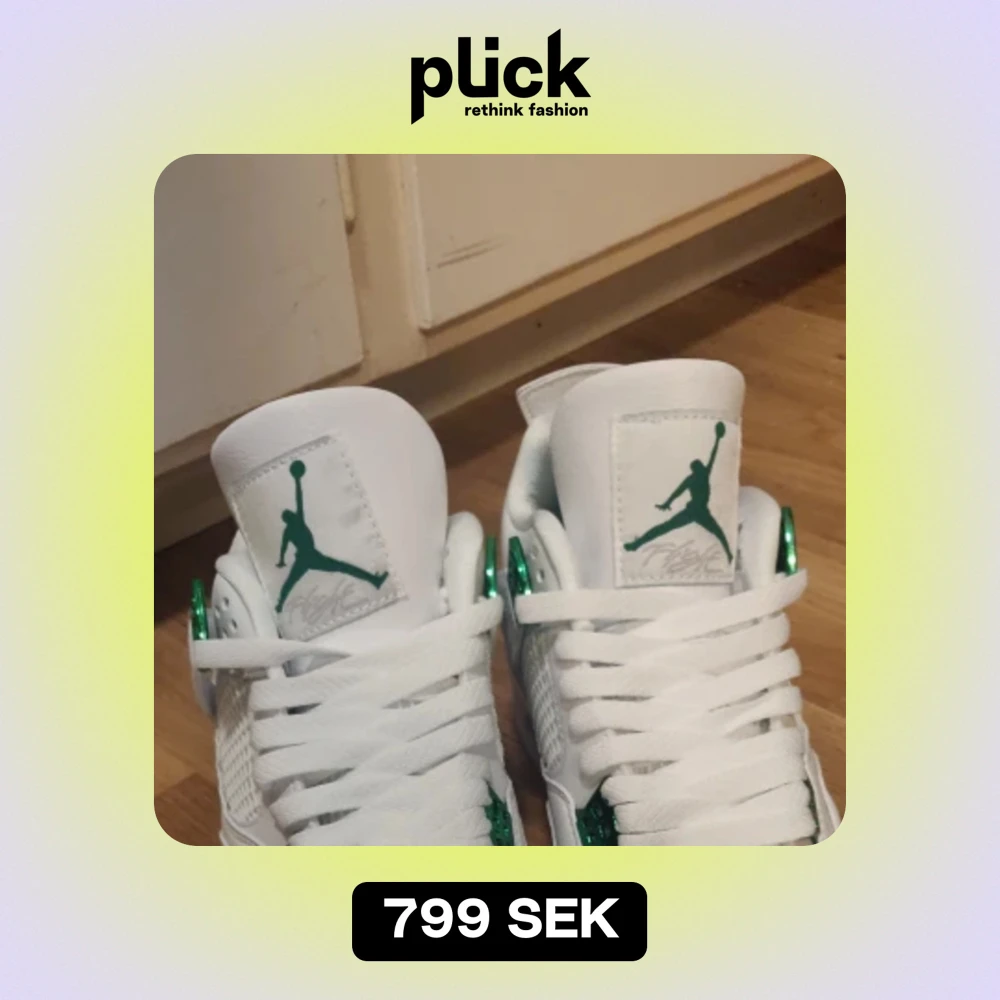 Hej! Jag säljer min Jordan 4 Metallic Green. Till skillnad från andra som säljer samma skor här på plick så är skorna helt nya aldrig använda. Skorna är i storlek 43. Dessa skor är inte äkta utan är en replika. Kvalitet på skorna kan ni se på bilderna.
