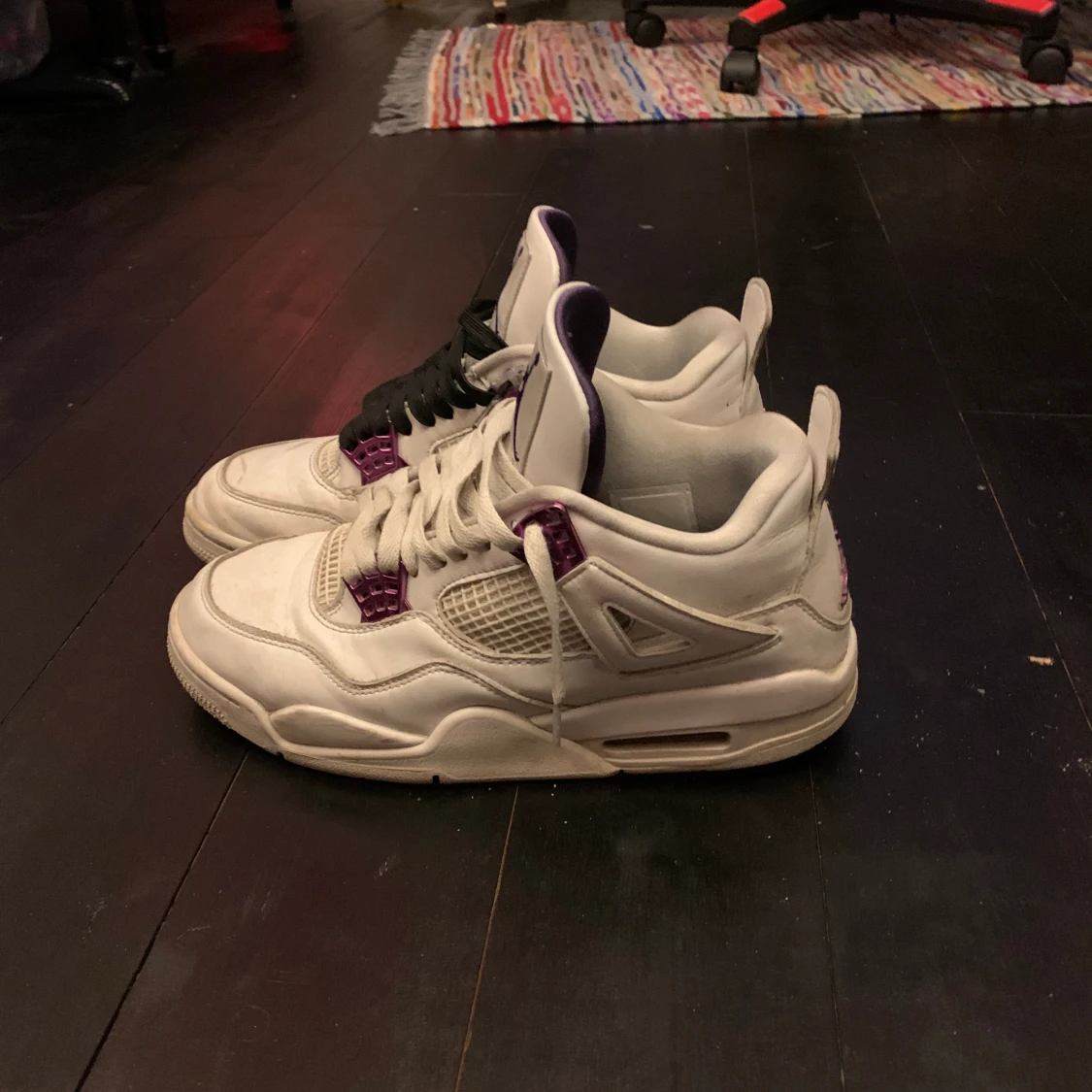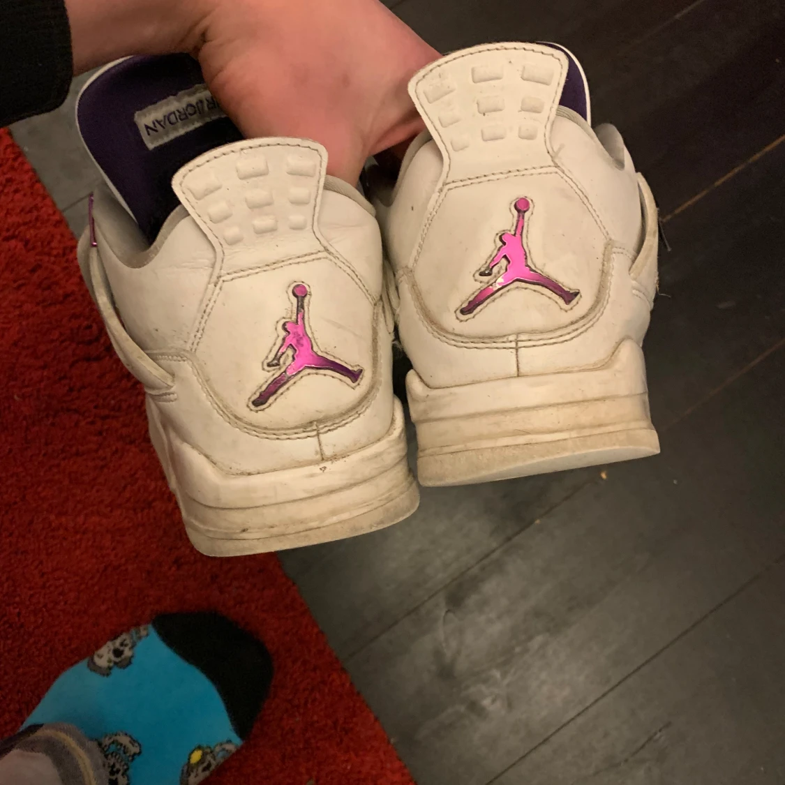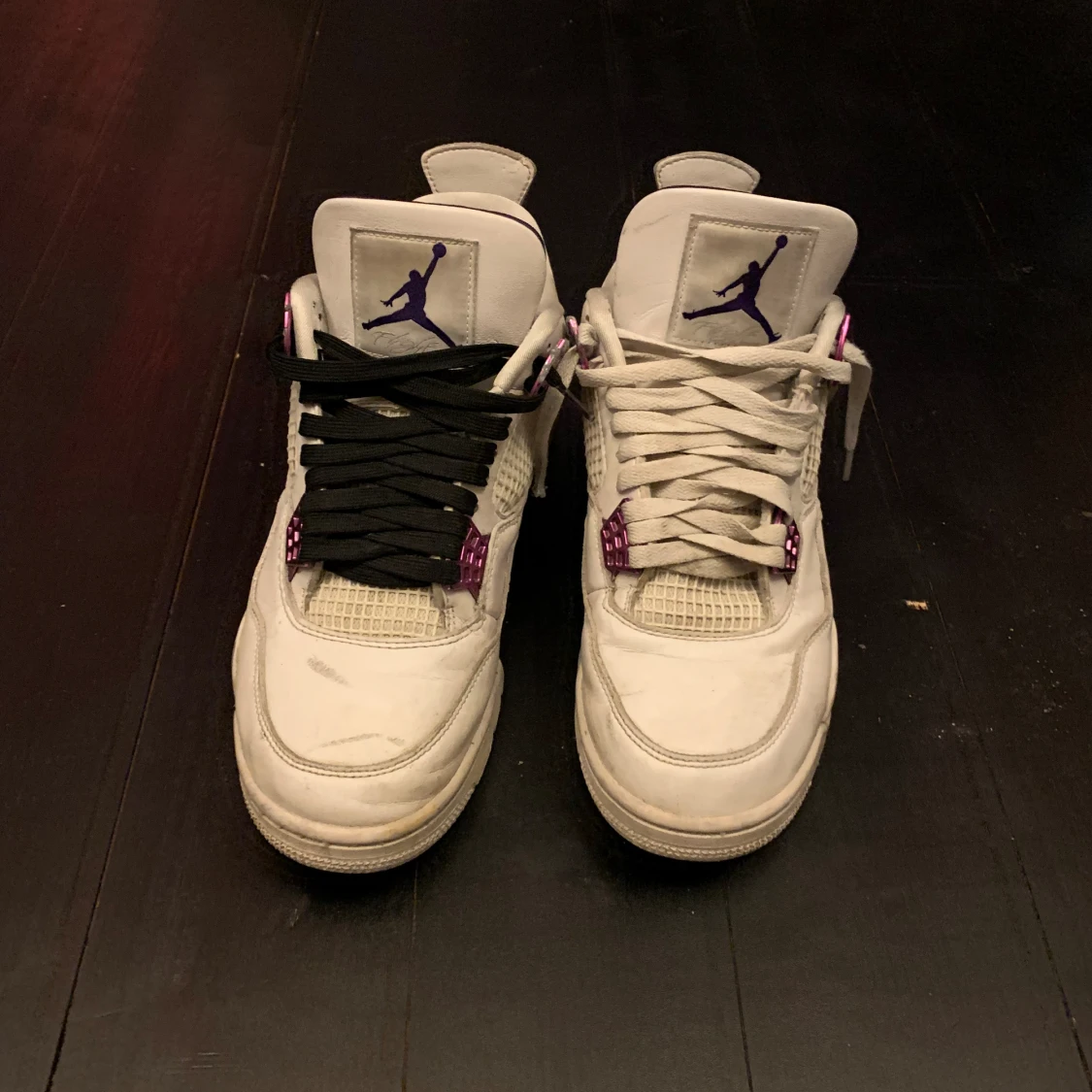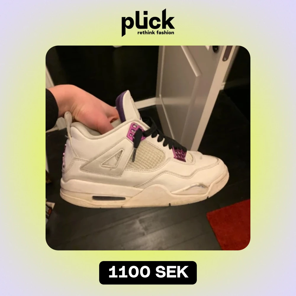 Jordan 4 som är helt stilrena! Dom är i ett ganska bra skick men har två märken som inte går bort😔 Men annars inget fel Vita snören fås med Pris kan diskuteras Sko lådan följer med Skriv för mer info!