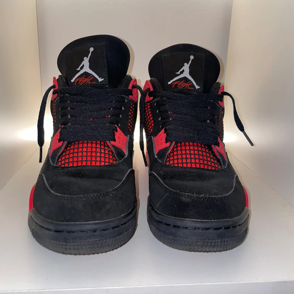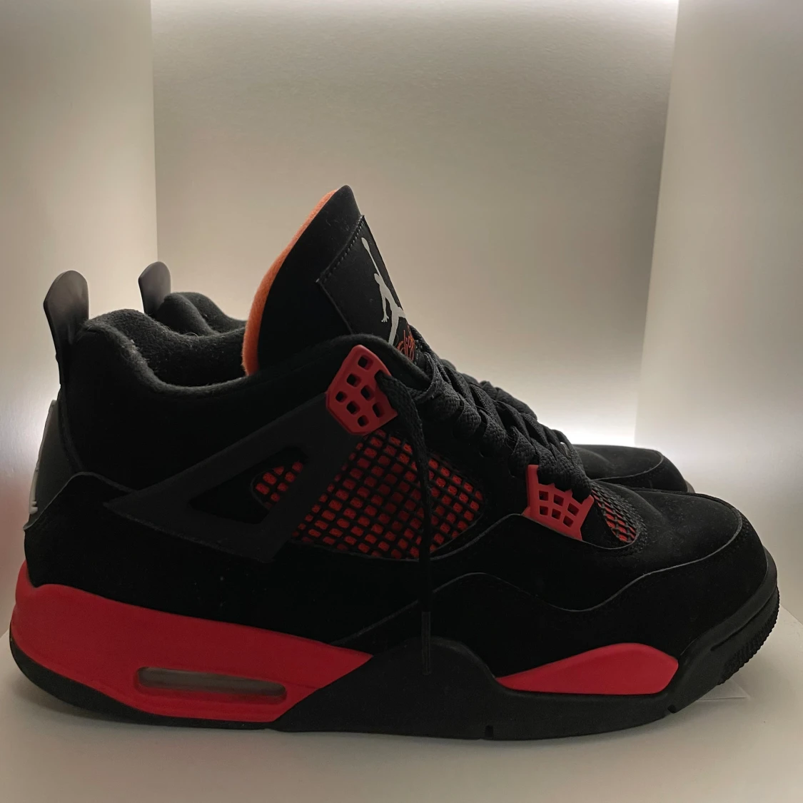 Säljer mina Jordan 4 red thunder för att jag använder inte dem längre. Skorna är i fint skick det finns ingen box hör av er om ni har några frågor.