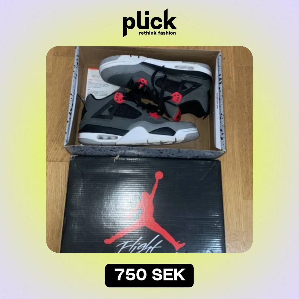 Jordan 4 retro - Jordan 4 dark grey infrared Str 44  Helt okej skick med lite fläckar på tårna och med lite färglossnad på vissa ställen. Priset är inte hugget i sten, pruta på!