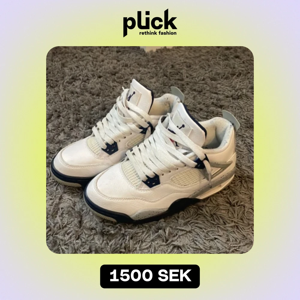 Säjer dessa fina Jordan 4s då de är lite för små. De står i storlek 38,5 men jag skulle säga att det passar någon med storlek 37 då jag själv annars har 38. De har ej använts så mycket och därav är i gott skick! Köpta här på Plick💕