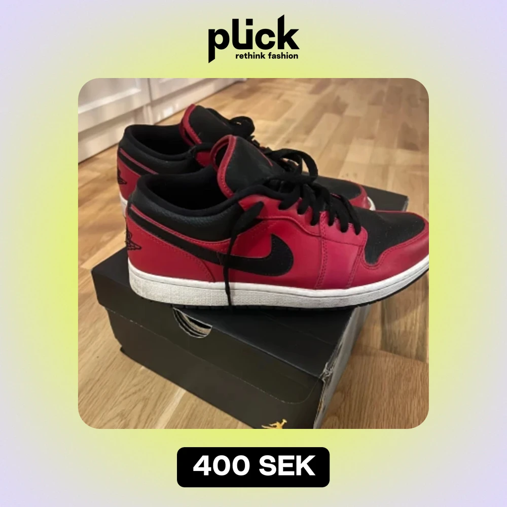Jordan 1 low reverse bred pebbled swoosh. Skick 7/10 (se bild 3, går att limma) ❗️ALL OG❗️ 200 eller högst bjudande, orginalkvitto finns vid förfrågan