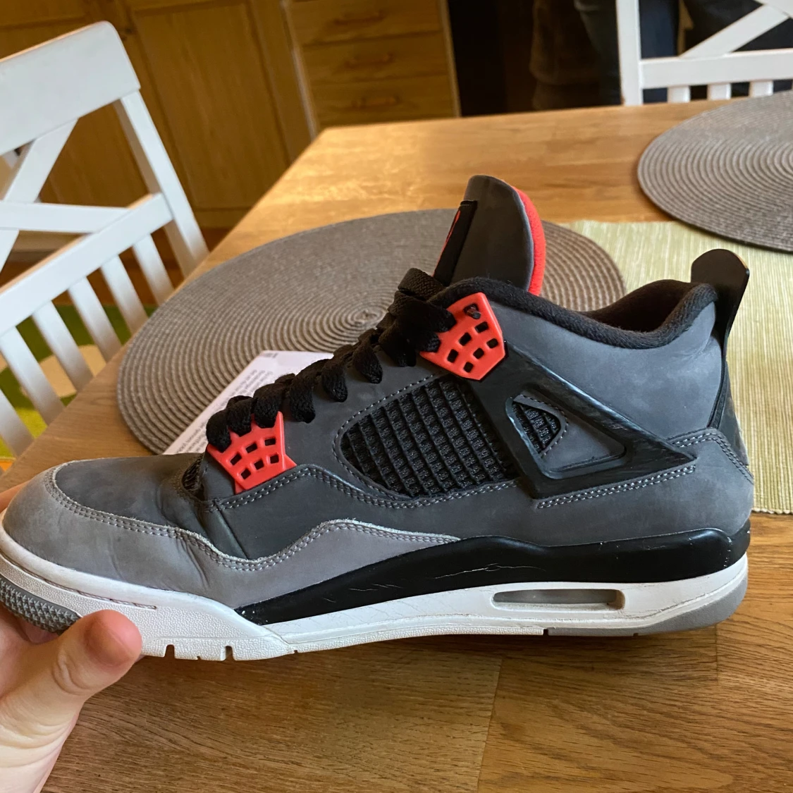 Det är lite slitage i inne hälen och ena nätet har släppt annars bra skick. Kan skicka bild om de önskas. Digital kvitto finns och boxen med.
