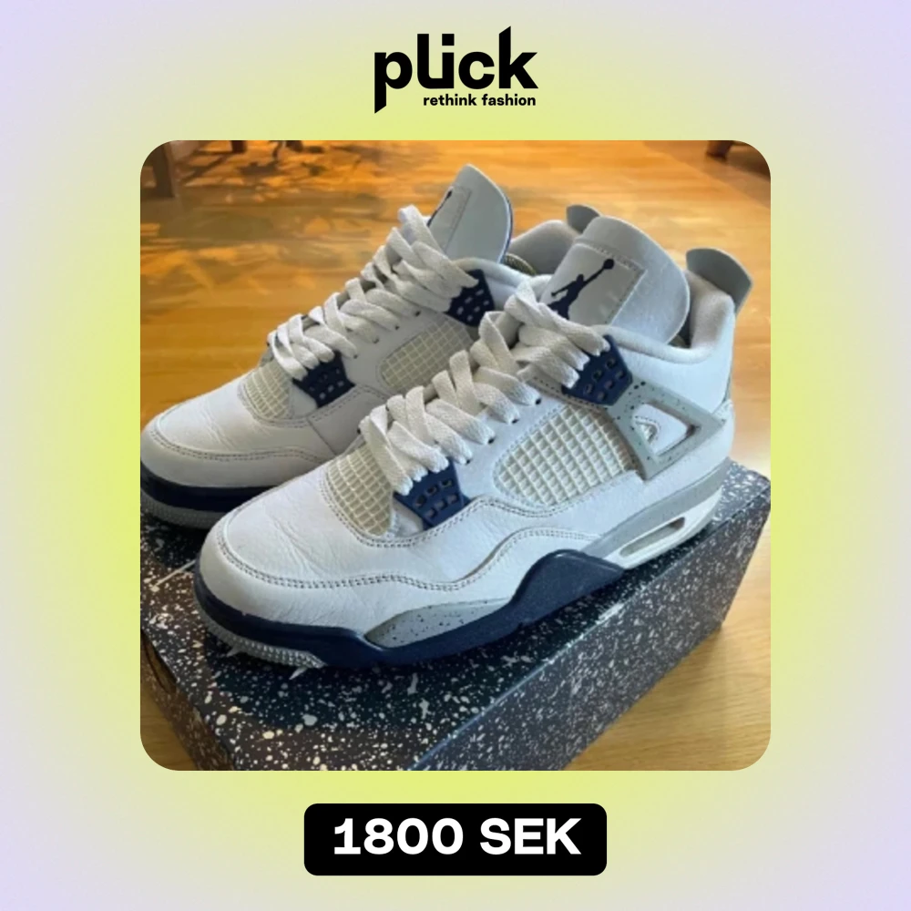 Säljer dessa Jordan 4 retro white/midnight navy i storleken 42,5 lite smutsiga på undersidan men annars toppen skick